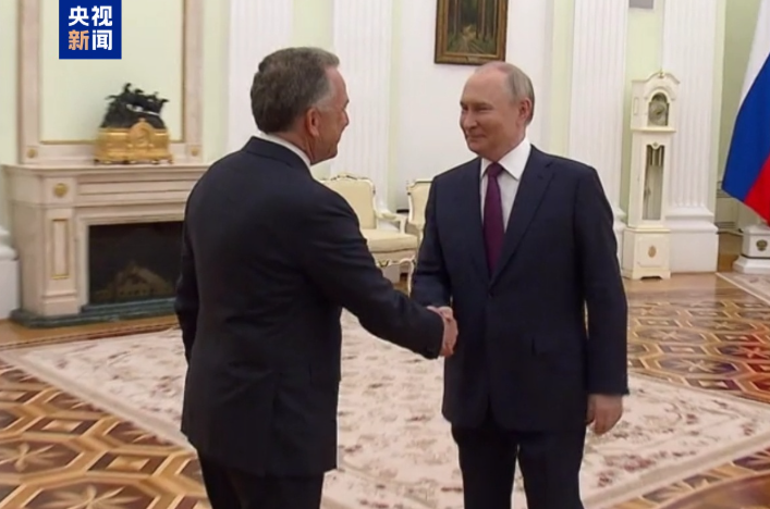 当地时间25日,俄罗斯总统普京在克里姆林宫就乌克兰问题与美国中东问题特使威特科夫举行会谈。