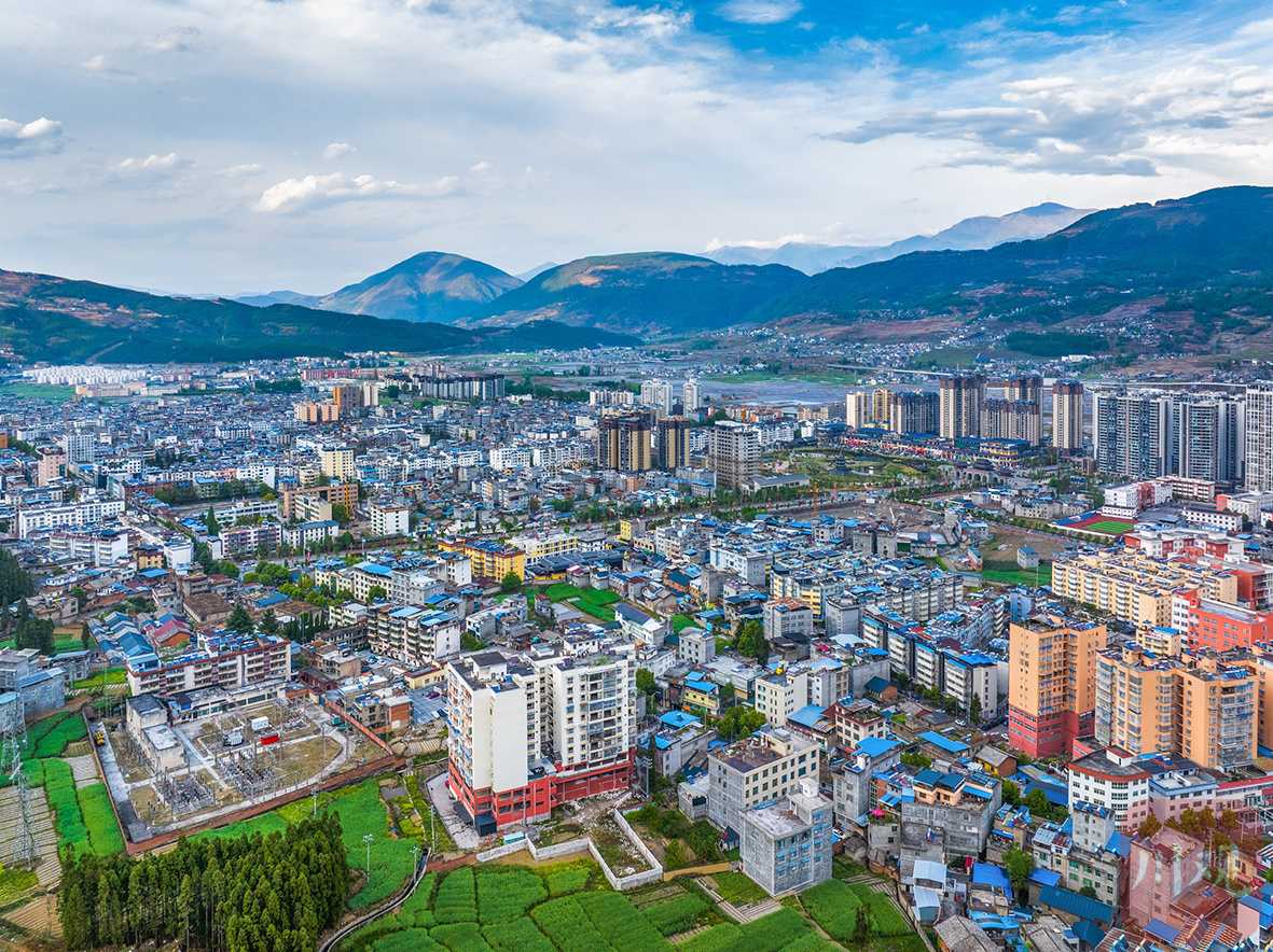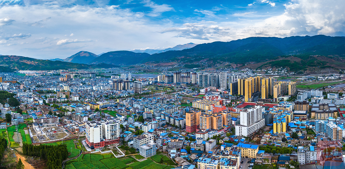 凉山州越西县县城,高楼鳞次栉比,尽显现代风貌。