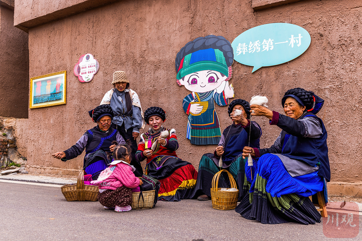 越西县普雄镇呷古村被誉为 “彝绣第一村”,历史悠久,其传承的彝绣已成为越西县特色名片与支柱产业。
