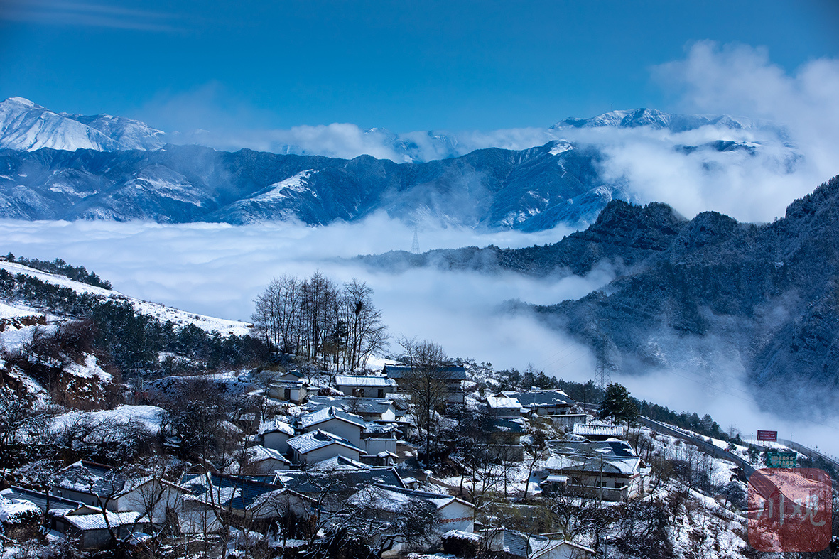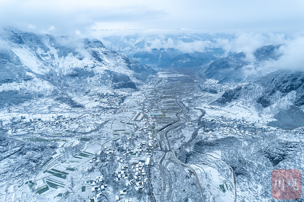 白雪皑皑,将越西县南箐镇尽数覆盖,勾勒出一片静谧纯净的冬日盛景。
