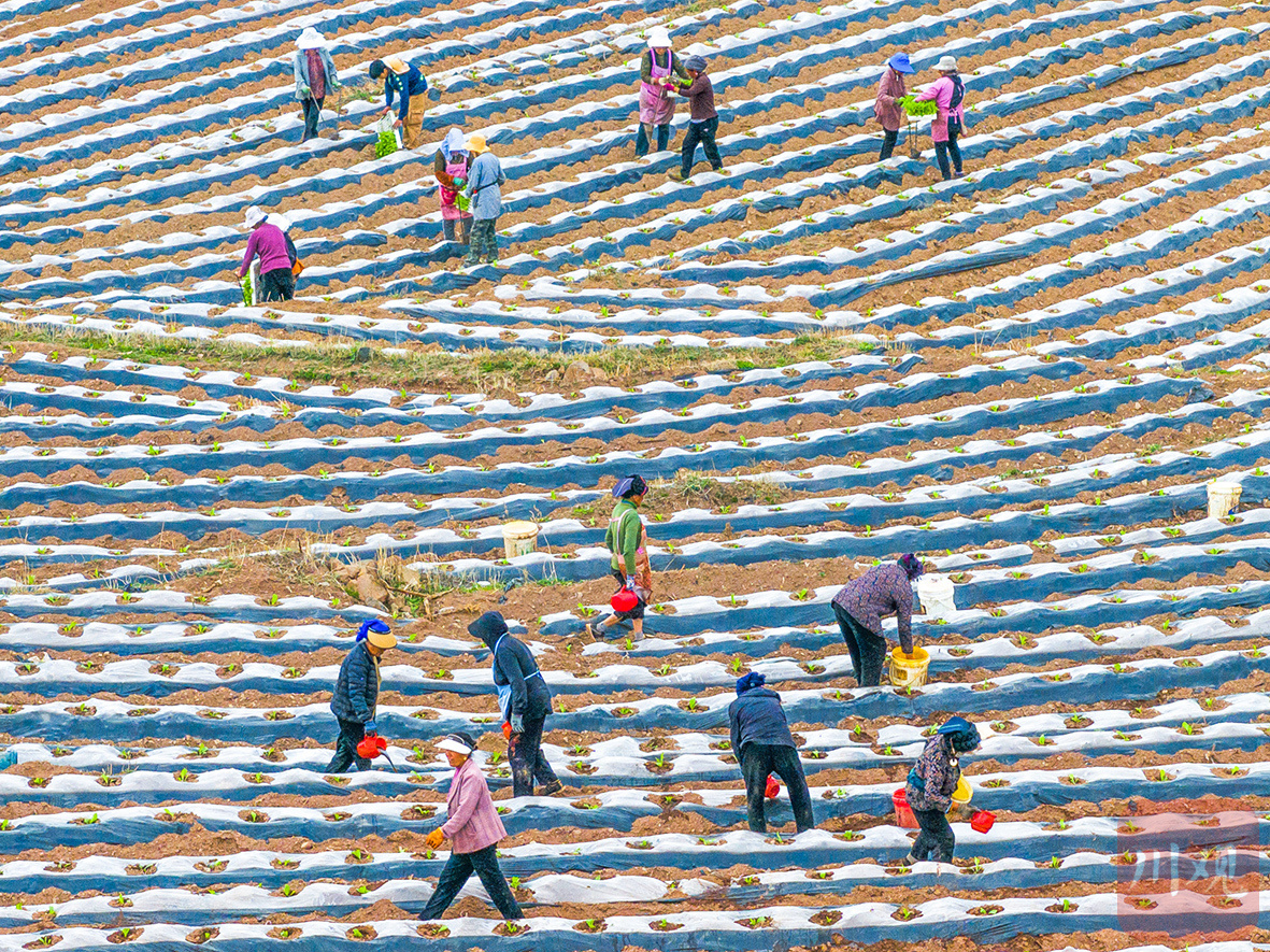在越西县普雄镇阳坡村,人们正忙着进行烟草种植。