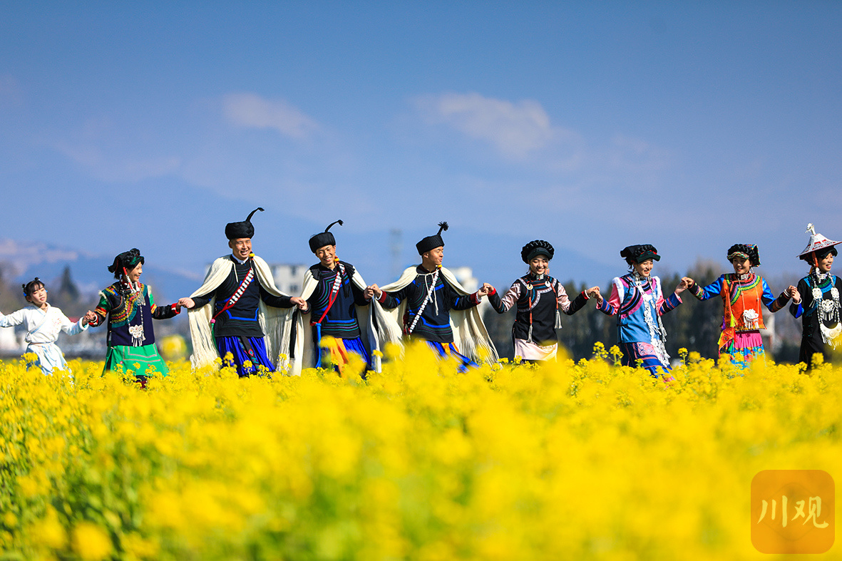 每到春天,越西县城郊的油菜花海便成为游客热衷的打卡胜地。