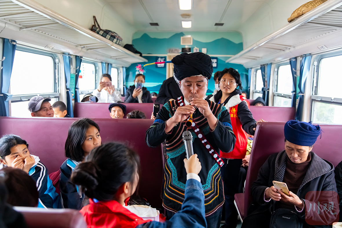 在普雄到西昌的慢火车上,一场别开生面的非遗展示活动精彩上演。