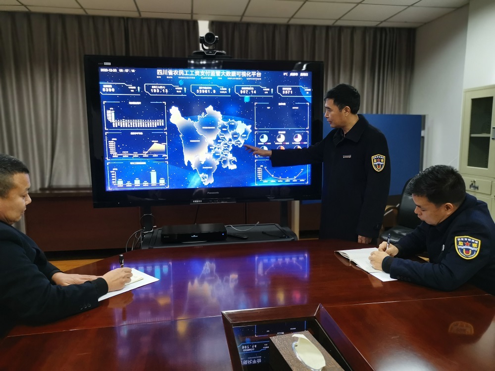 为了实现对农民工工资支付全过程动态监管,落实《保障农民工工资支付条例》中“县级以上地方人民政府应当建立农民工工资支付监控预警平台”要求,我省按照省级统一建设、分级属地实施、谁主管谁负责的原则,去年全省建设了“四川省农民工工资支付监管大数据可视化平台”。平台实现了人社、发展改革、司法行政、财政、住建、交运、水利等部门工程项目信息共享。通过平台,监管部门和主管部门可以适时掌握全省所有在建项目预警情况,查看某一个具体项目的参建单位、班组管理、工人打卡、工资发放等情况,从而实现对全省住建、交通、水利等行业在建工程项目工资支付制度预警监控和全程监管。目前,平台已在全省推广应用。