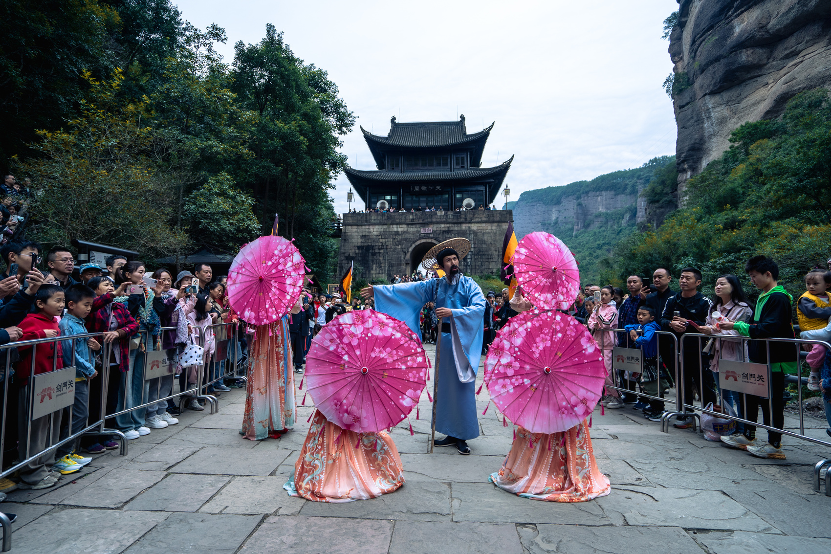 针对假期客流高峰,景区推出多项贴心服务。鸟道、猿猱道等候区安排国潮乐队快闪演奏,用音乐缓解排队时光;所有参与互动项目的游客需携带身份证核验,活动细则可通过微信公众号及小红书、抖音平台查询。景区负责人表示,今年活动突出“历史场景活化”与“游客深度参与”,通过创意设计让传统文化更贴近现代旅行需求。目前,剑门关景区已做好客流疏导预案,建议游客提前规划行程、错峰出行,在山水人文交织的独特氛围中,开启一场跨越时空的“五一”之旅。(剑门关景区供图)