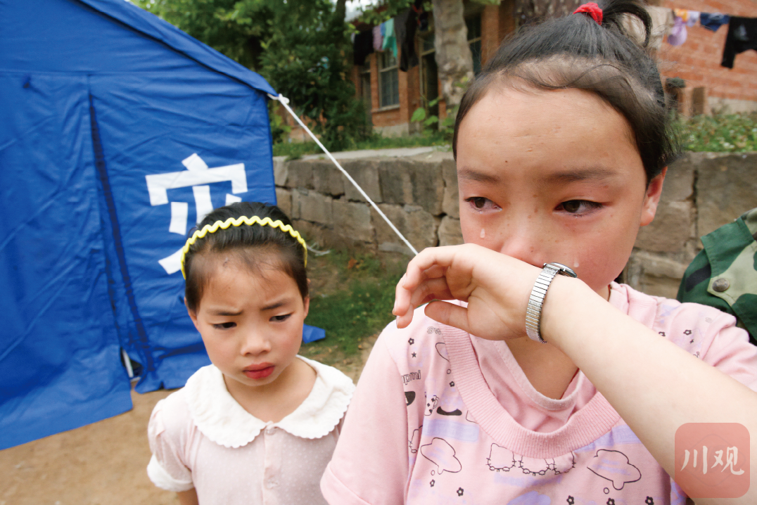 2008年5月22日,平武南坝镇, 两姐妹想到母亲被泥石流掩埋,流下了伤心的泪水。
