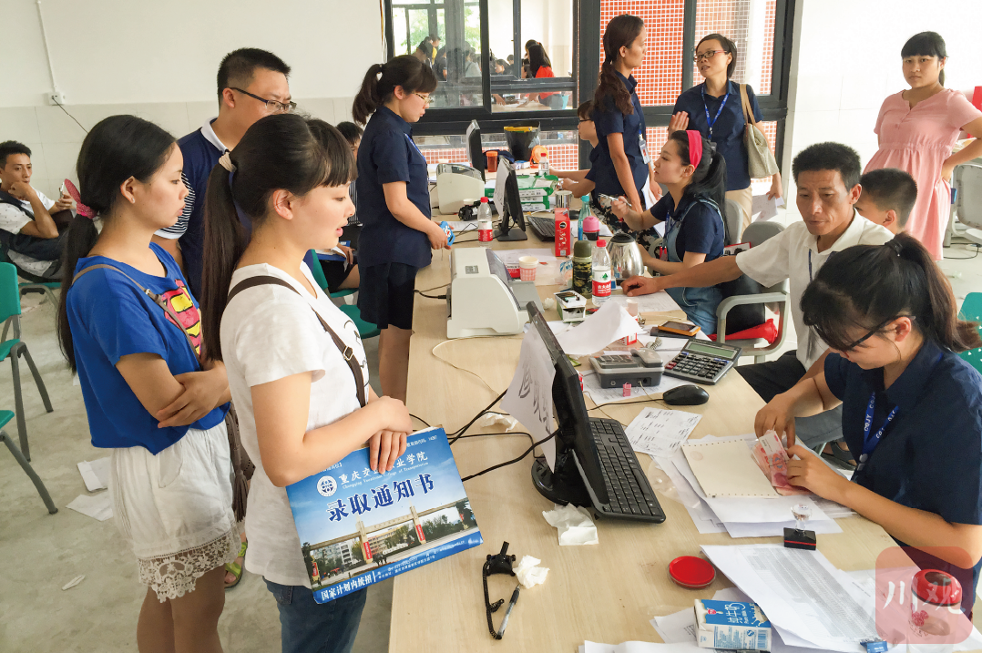 2015年8月30日,重庆江津区双福,考上重庆交通职业学院的姐姐冯雪梅到校报到。