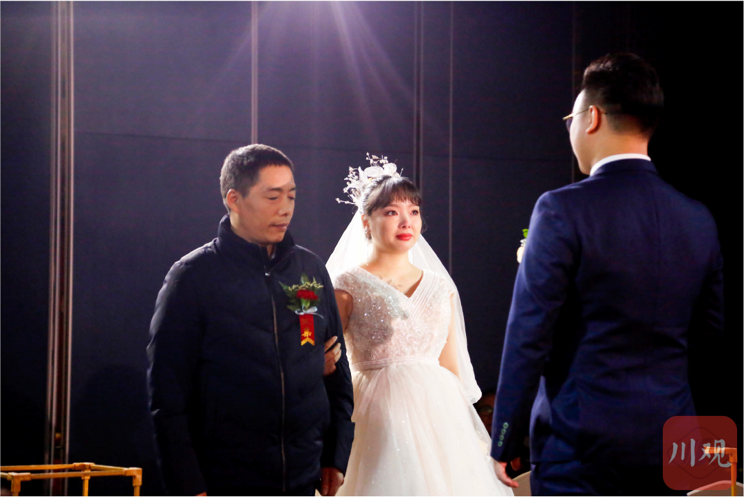 2021年11月15日, 重庆永川区婚礼现场, 父亲冯帮武把大女儿冯雪梅交到了女婿手中, 冯雪梅流下了幸福的眼泪。