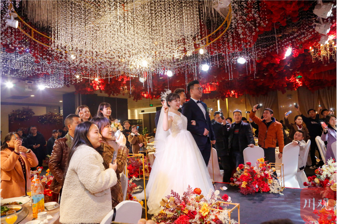 2021年11月15日, 重庆永川区, 冯雪梅的婚礼。穿上婚纱的姐姐喜结良缘,众多资助她们的好心人及亲朋好友见证了她们的幸福时刻。