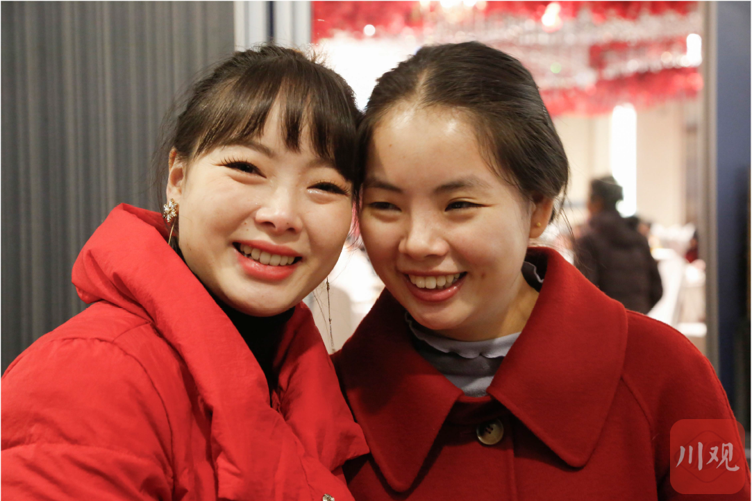 2021年11月15日, 重庆永川区冯雪梅的婚礼现场, 当年的小妹(右)如今已是大姑娘, 两姐妹幸福合影。