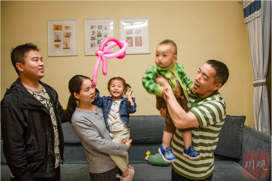 2024年5月1日,重庆九龙坡区杨渡二村, 下班后的父亲冯帮武来到小女儿冯小雁家中看望两个孙子,一家其乐融融。