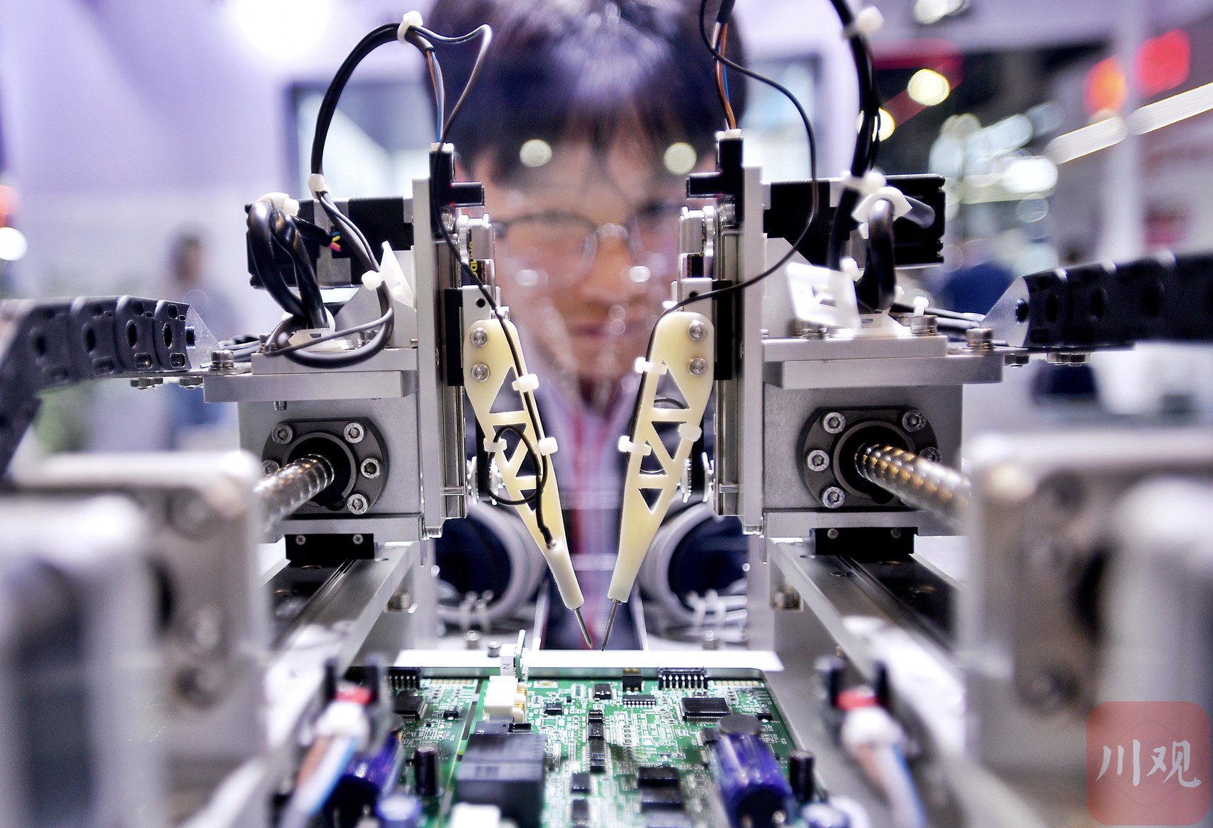 展馆50公里外的德阳,东方电气集团东方电机有限公司焊接分厂内,4台机械臂正完成一项历史性任务——对世界首台500兆瓦冲击式转轮外部水斗进行全流程焊接。这是该领域首次实现机器人替代人工进行冲击式转轮外部水斗全过程焊接。同样的变革发生在四川多地:宜宾的动力电池工厂里,AGV机器人(自动引导运输车)日均搬运物料超百吨;成都航空产业园的“黑灯车间”中,智能装备24小时不间断加工飞机零部件……