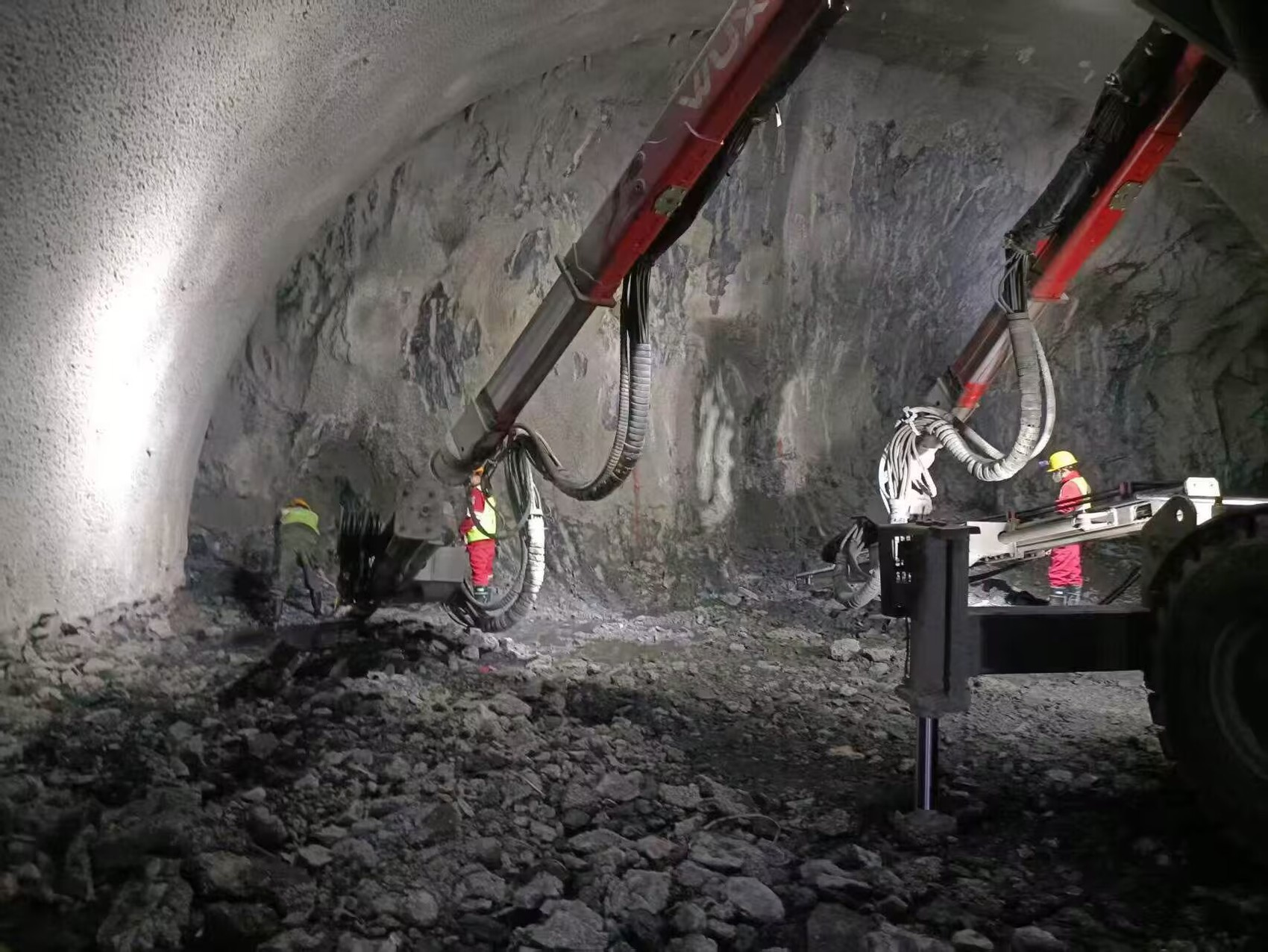 为了保证施工安全,在隧道开挖过程中,项目团队采取“机械化换人、智能化减人”方式,先后引进双曲臂凿岩台车、智能拱架一体化台车等设施设备12台(套),使得立架工序班组由传统的9人减少至3人,作业时间由3小时缩短至1.5小时。