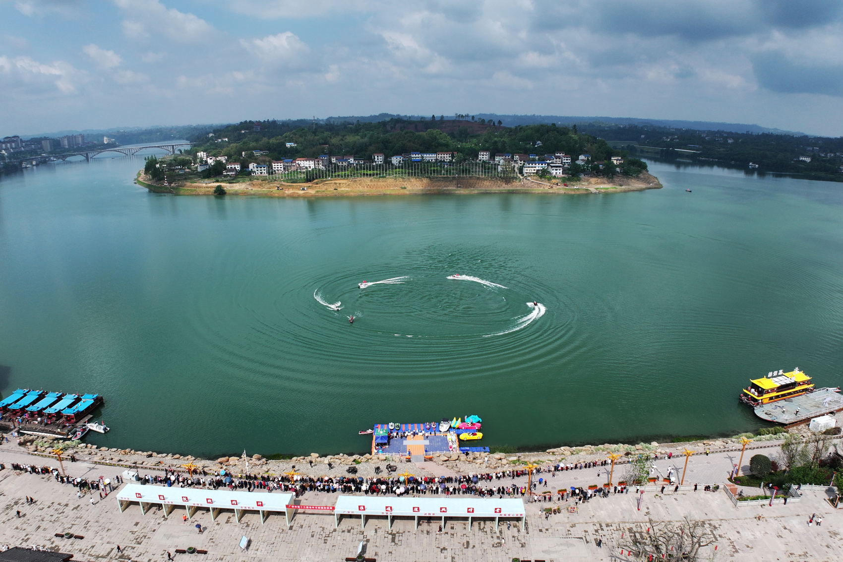 航拍武胜县嘉陵江水上运动表演现场。(夏俊林 摄)