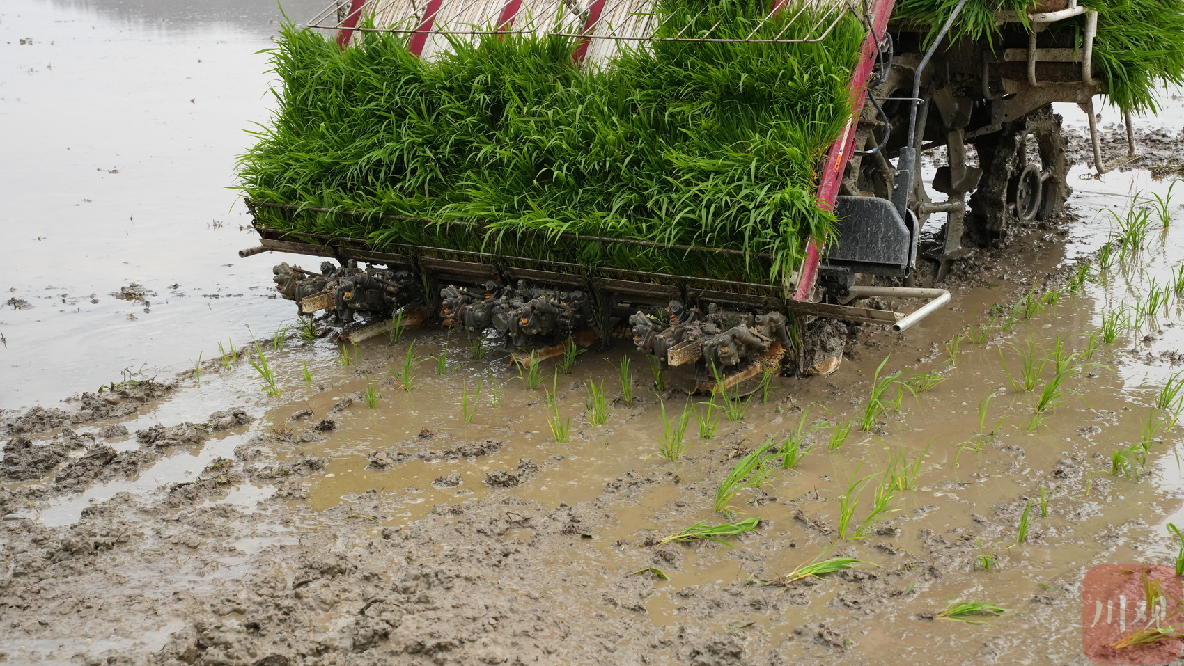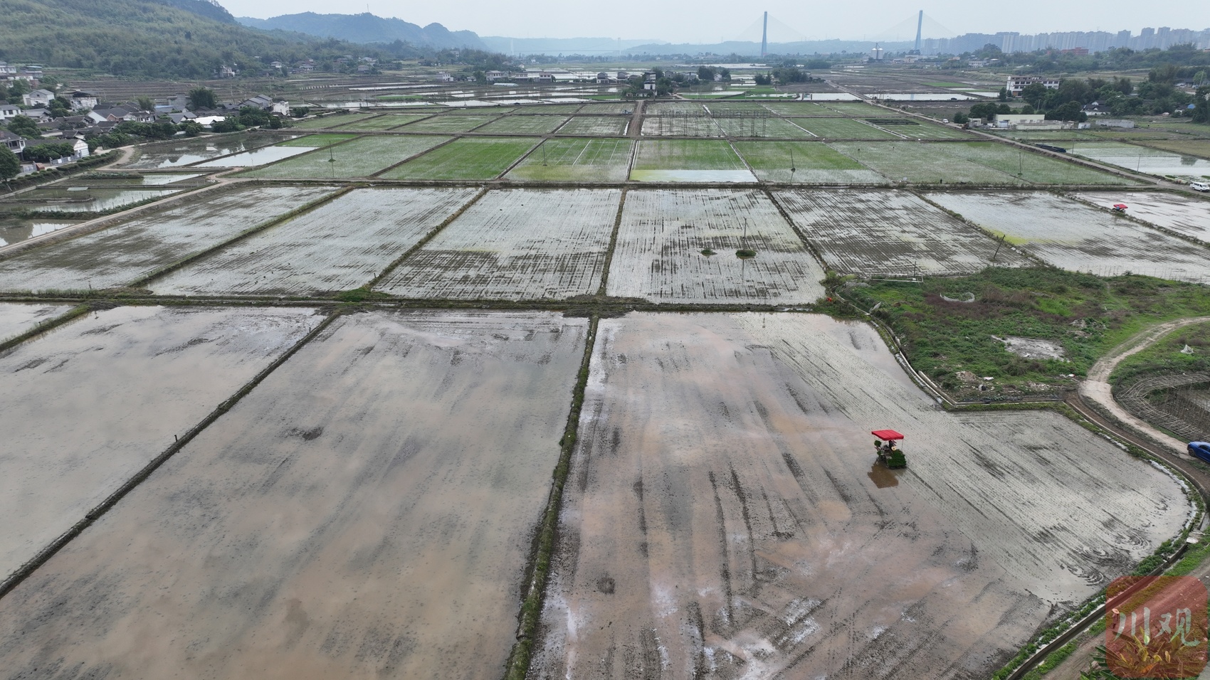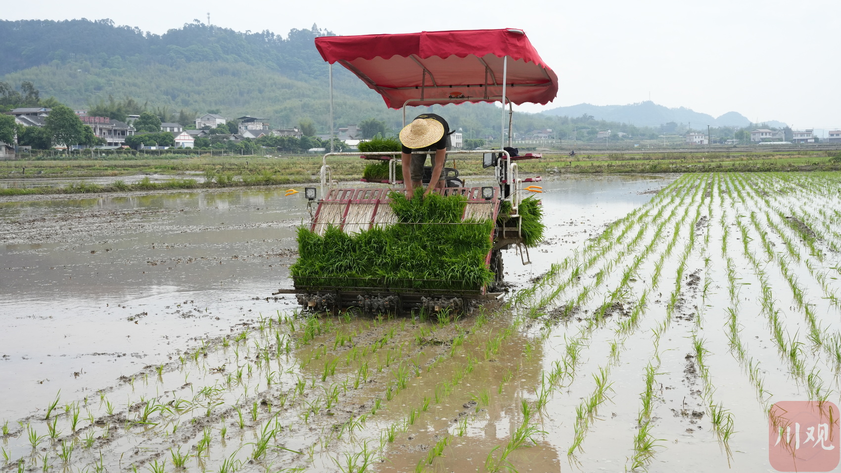 初夏时节,正值宜宾水稻插秧的“黄金期”。4月27日,在宜宾万亩天府粮仓核心示范区,两台“无人驾驶”插秧机正在田间往来穿梭,所到之处都整齐地栽上了嫩绿的秧苗,秧苗与秧苗之间间距一致,每一行秧苗近乎平行,看着“极度舒适”。
