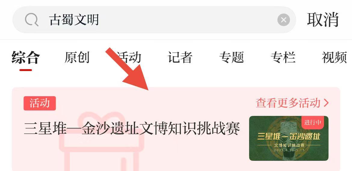 方式四:在川观新闻首页顶部搜索框输入“古蜀文明”,点击活动链接即可参与。