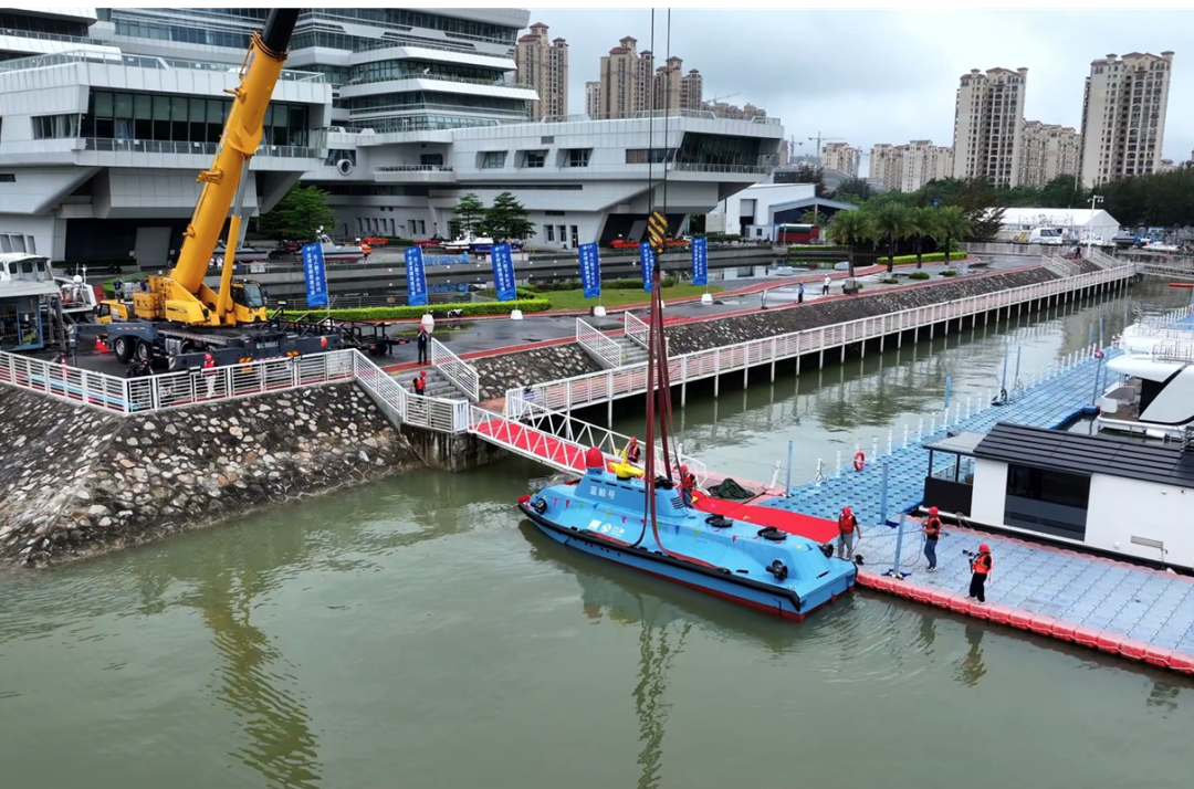▷28日,全球首艘高速可潜无人艇“蓝鲸号”下水。“蓝鲸号”可实现数十米深的下潜和水下航行,能在水下静态悬浮一个多月,随时响应突发任务。可用于气象探测、水下地形地貌测绘等。