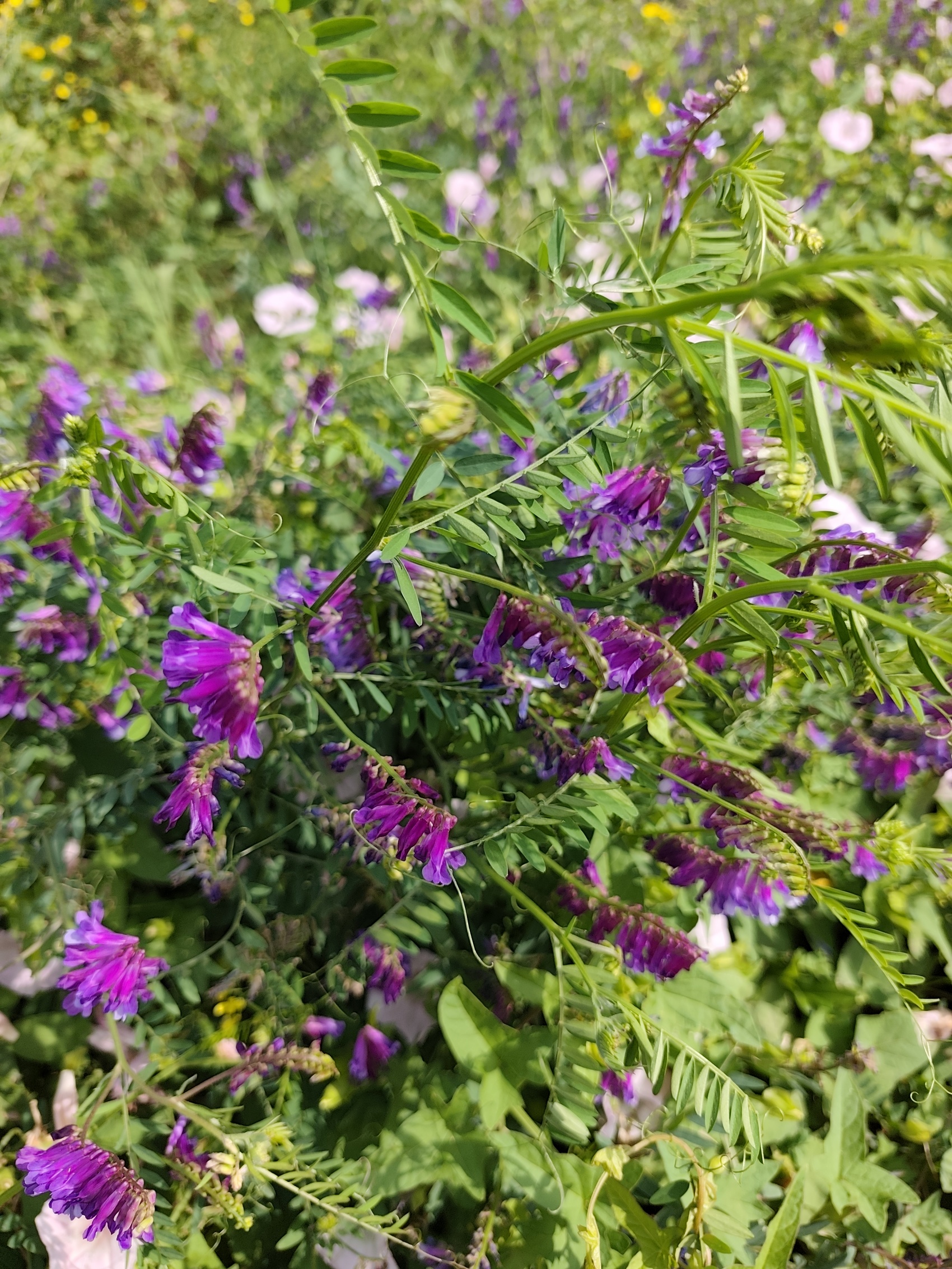 正是柑橘花芬芳时节,在西充县乐橙果业柑橘基地和烈风柑橘基地套种的绿肥光叶紫花苕也长势繁茂,盛开着蓝紫色的花。