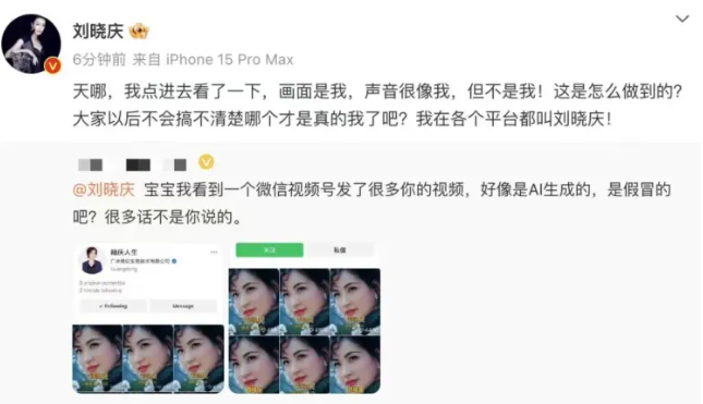 利用AI伪造视频的现象并不罕见,此前,曾有多位明星成为AI伪造视频的素材。3月3日,有网友向演员刘晓庆反馈有人在视频号AI生成视频假冒她。
