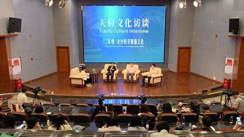 4月28日,由四川省委宣传部推出的天府文化访谈第二期开讲。北京大学教授孙华、四川大学教授黎海超、四川省文物考古研究院研究馆员冉宏林,三位嘉宾围绕青铜器文化开启对谈,进一步揭开古蜀文明的神秘面纱。