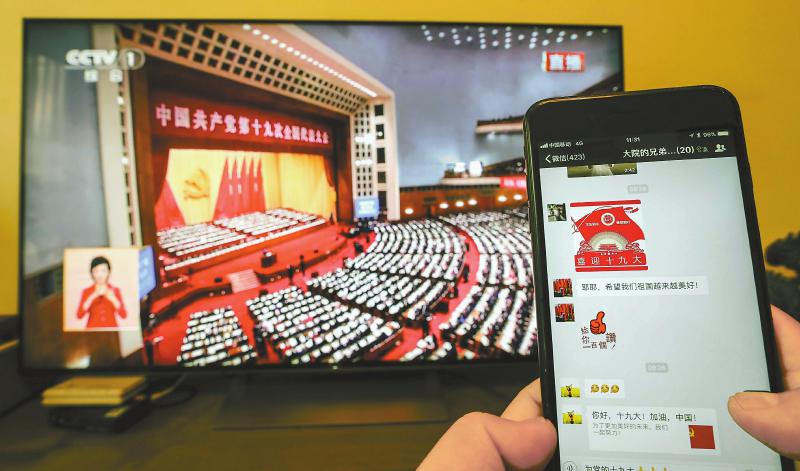 10月18日,成都网友收看党的十九大开幕直播,并把喜悦的心情分享到朋友圈。记者 尹钢 摄