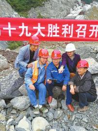 国家重点工程南江红鱼洞水库及灌区工地上,建设者们用手机收看十九大开幕会盛况。 岳旭东 摄(视觉四川)
