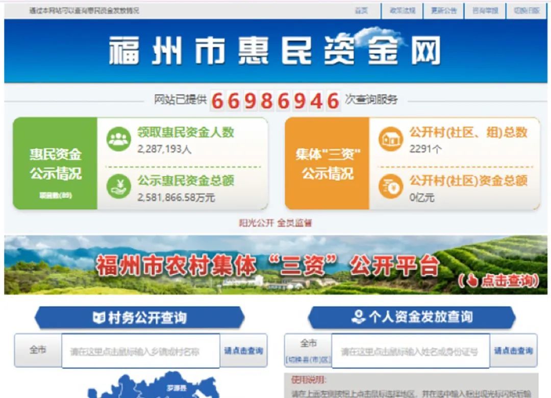 截至2025年3月19日,福建省福州市惠民资金网的页面截图显示,该平台已提供66986946次查询服务。据福州市纪委监委有关同志介绍,该平台自从开通以来,至今累积的数据量已经成为当地数字监督信息化建设的重要优质数据。