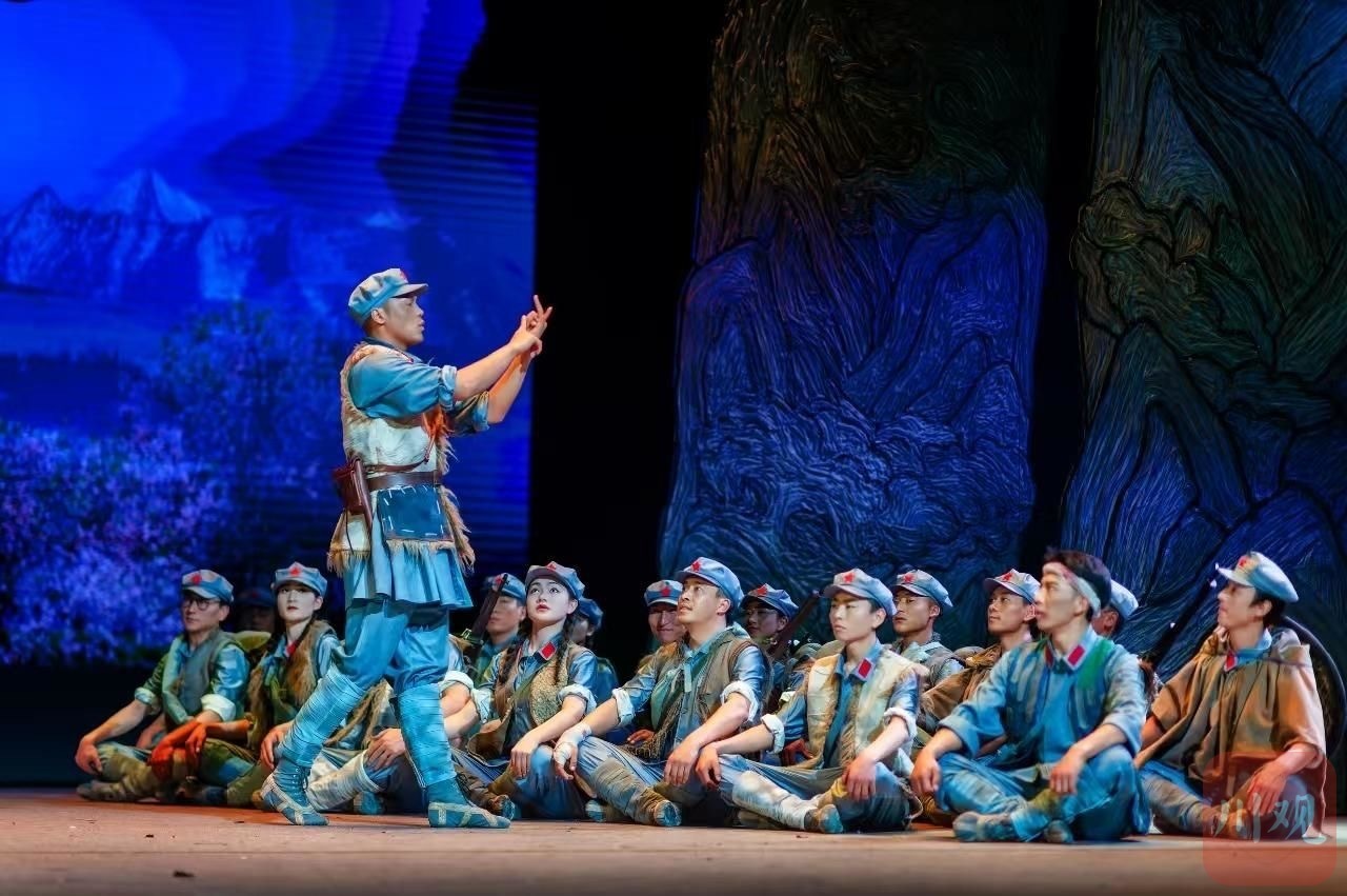 剧中,以老红军青山的视角为线索,串起了1936年至今的炉霍历史,展现了红军长征途中的英勇事迹和军民之间的深厚情谊。整个作品由“序幕——三个篇章——尾声”组成,从远古的山歌走到红色的山河,再走到改革开放后的今天,炉霍人的心声通过不同时期的山歌和舞蹈自然流淌,赢得了现场观众的阵阵掌声。