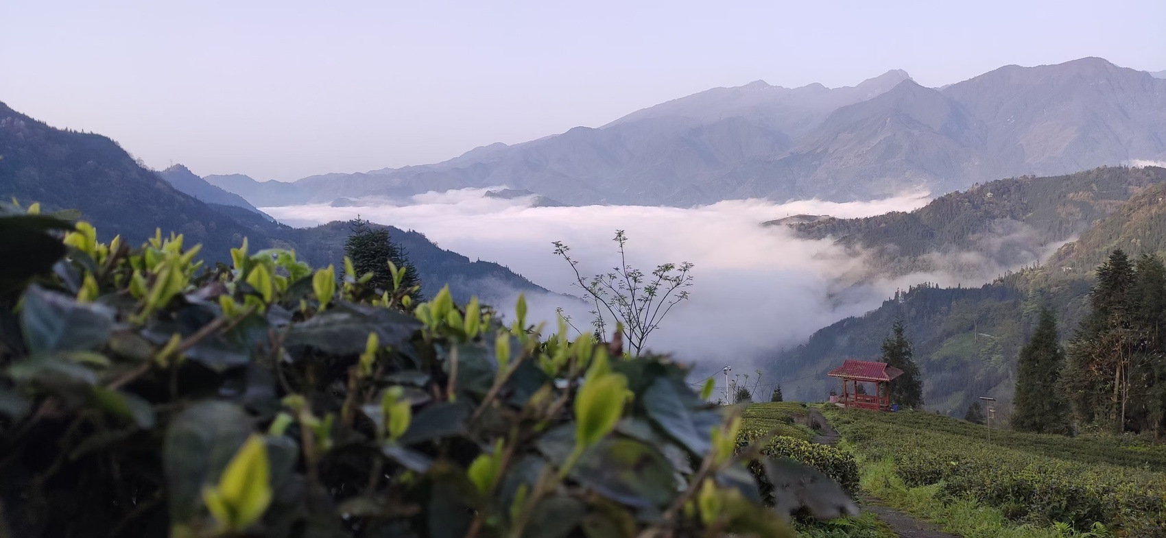 宝兴县地处四川盆地西缘,气候湿润、云雾缭绕,全县共有2.85万亩茶园中,其中1364亩通过有机认证,其余茶园均实现无公害种植。独特的昼夜温差与无工业污染的环境,造就了茶叶“甘醇鲜爽、汤色透亮”的鲜明特色。