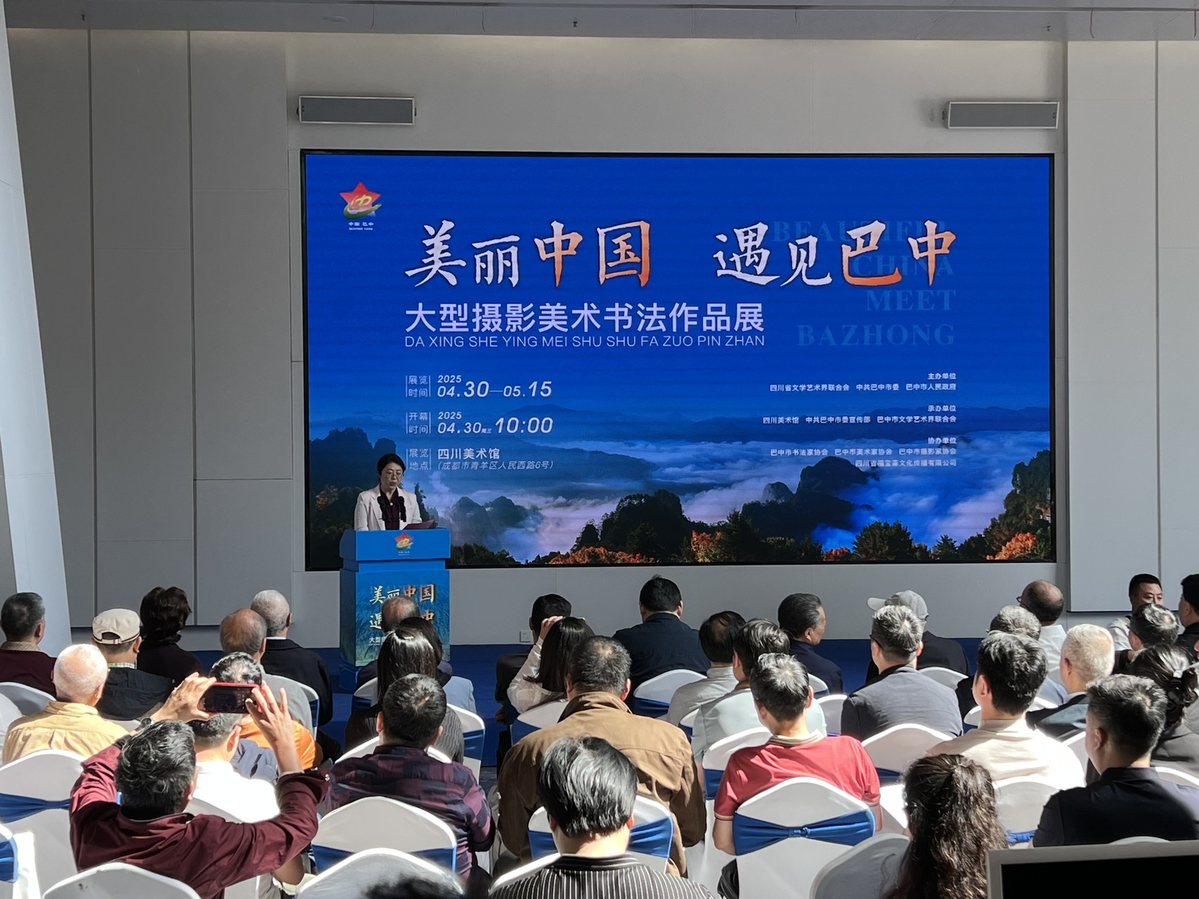 4月30日上午,四川美术馆内,一场极具巴中特色的展览吸引众多目光。当天,“美丽中国 遇见巴中”大型摄影书法美术作品展启幕,展览将持续至5月15日。