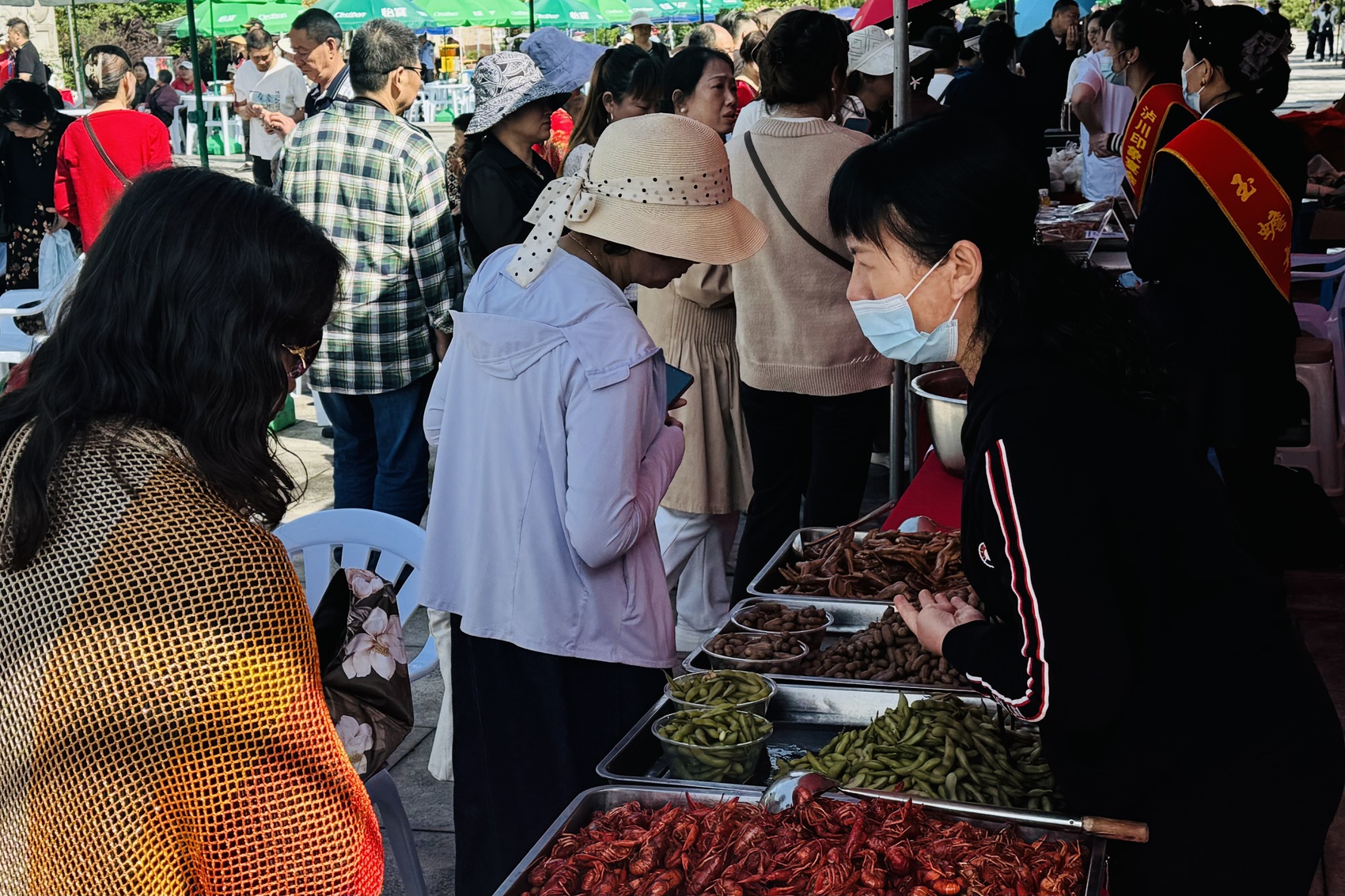 本地餐饮商家,在活动现场搭台“卖货”,引游客驻足询问购买。