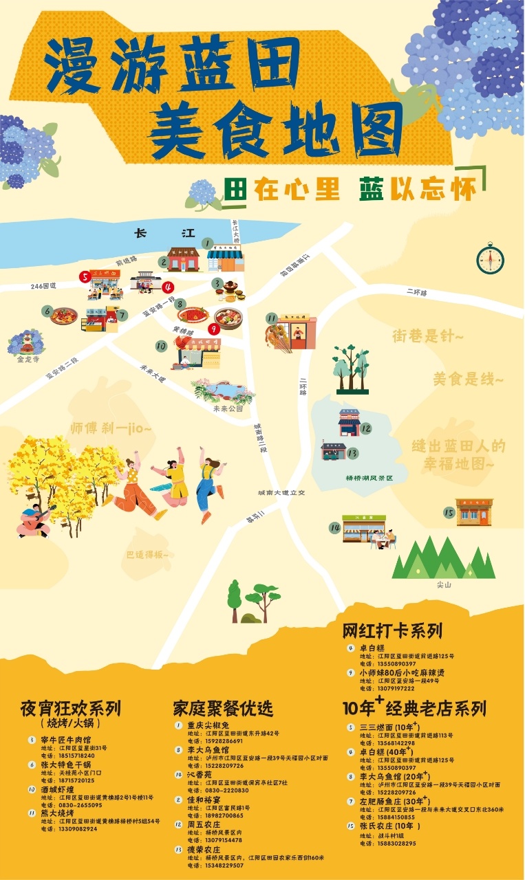 “田”在心里,“蓝”以忘怀。“五一”将至,江阳区蓝田街道精心绘制《漫游蓝田》美食地图,网罗40余家宝藏店铺,从百年老字号到街头烟火摊,从非遗手艺到网红美食,带你一站式解锁“舌尖上的蓝田”。