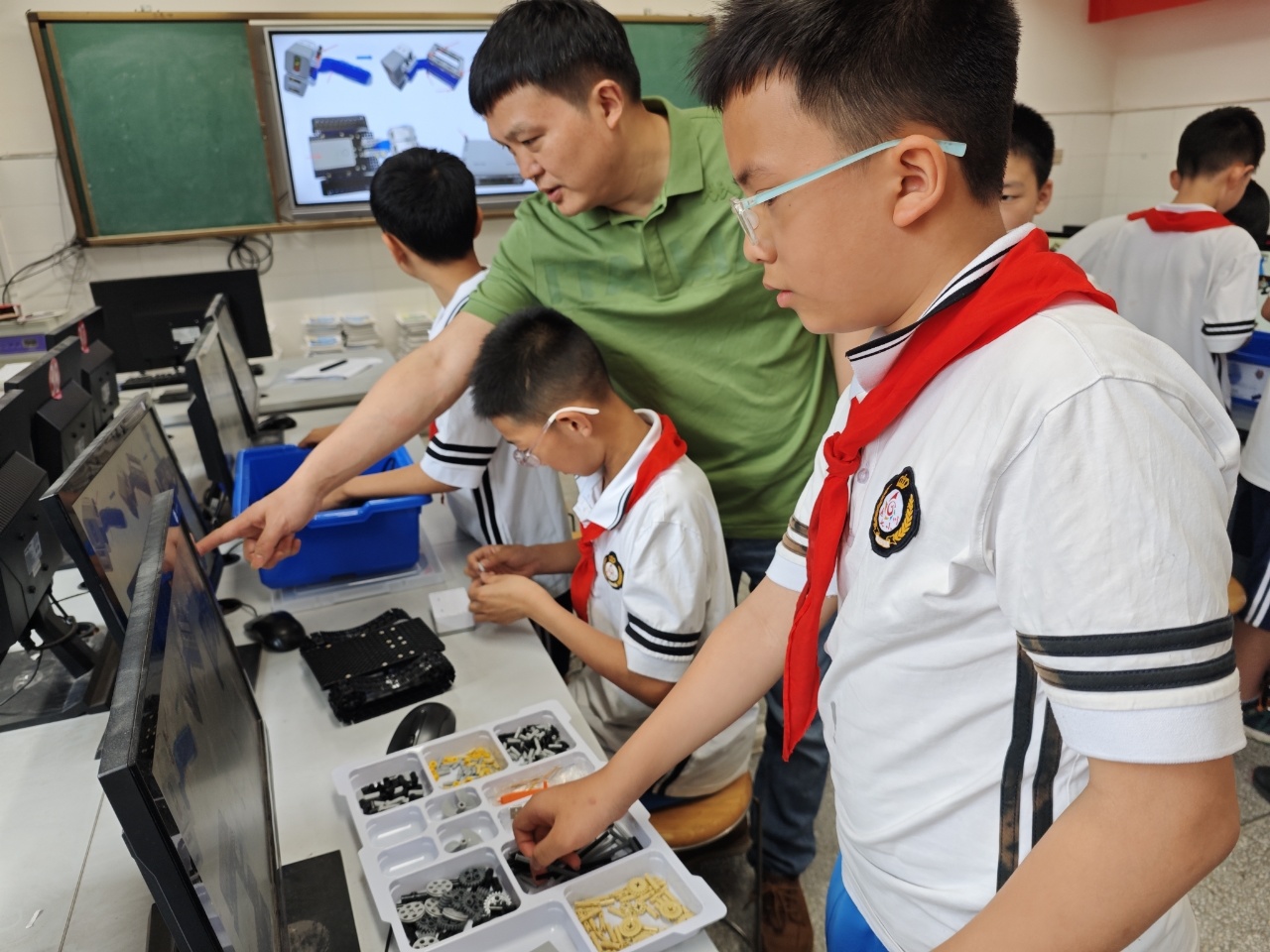 达州市通川区七小新锦学校的老师正在指导学生开展电脑编程。