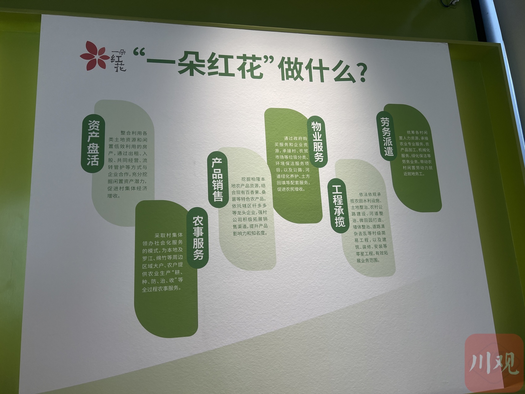 红花村“一朵红花”强村公司业务展板。陈丽霏 摄