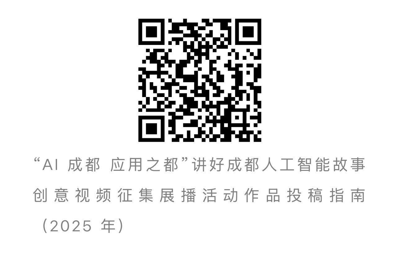 在内容上,紧扣“AI成都 应用之都”主题,围绕人工智能在成都标志性地标、文旅消费场景、日常生活服务、智慧城市等应用领域展开创作,生动展现人工智能技术赋能城市发展的创新实践与精彩故事。在形式上,鼓励创作者结合实地拍摄、场景演绎、情景纪实等多种形式进行影像创作;同时鼓励在内容制作中合理应用 AIGC(人工智能生成内容)技术,如 AI图像生成、智能剪辑、虚拟数字人演绎、智能配音等,探索人工智能赋能影像表达的新路径。