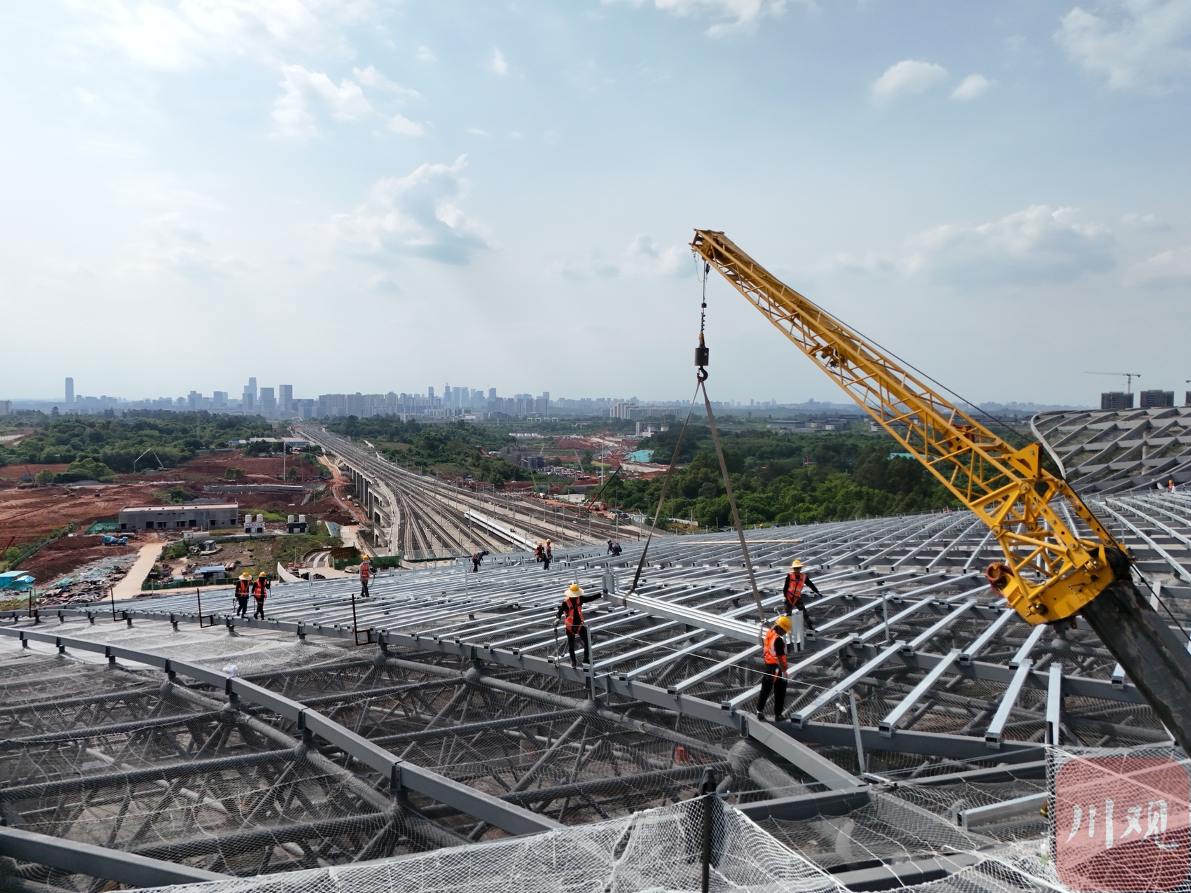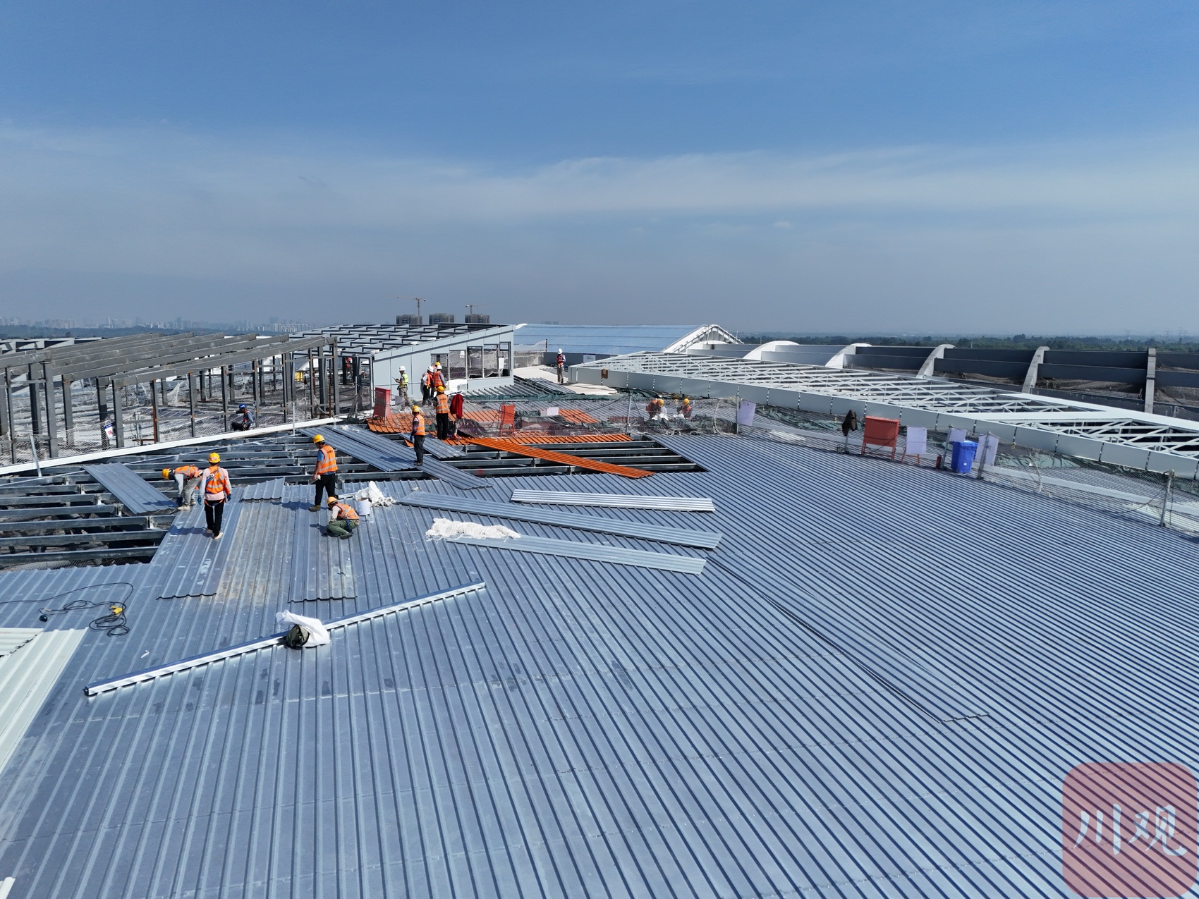 5月1日,位于四川天府新区的天府高铁站的建设工地上,呈现出一片热火朝天的景象。四川最大高铁站——天府站的建设者们仍坚守岗位,全力投入金属屋面的大面积施工,用辛勤的汗水奏响劳动乐章,为天府站的早日落成添砖加瓦。