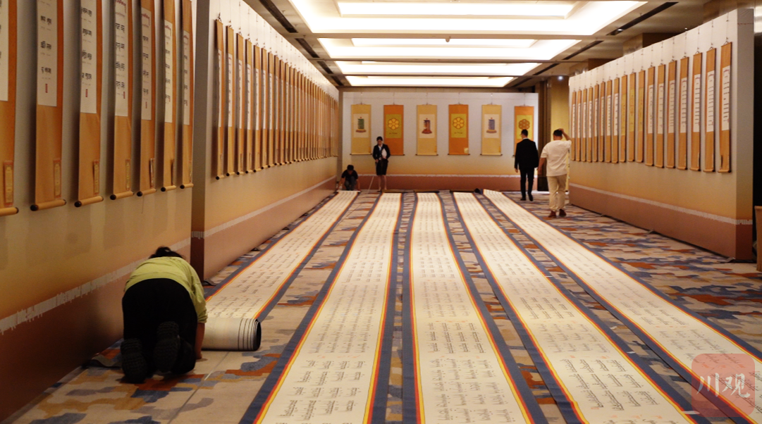 4月30日,据新龙县委宣传部消息,由该县书法家英忠白多、扎西班玖联袂创作的1500米新龙锅庄歌词藏文书法长卷,成功斩获"最大规模的锅庄舞主题藏文书法长卷"世界纪录认证。