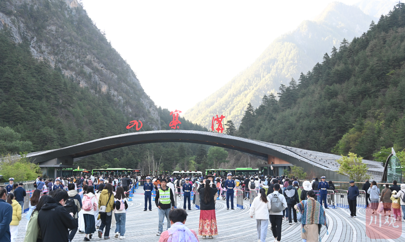 尽管游客量激增,但景区内秩序井然。九寨沟管理局采取了多项措施保障游客的游览体验,包括增加观光车班次、增设临时休息区、加强安保力量等。景区相关工作人员介绍,五一期间所有工作人员均取消休假,全力为游客提供服务。