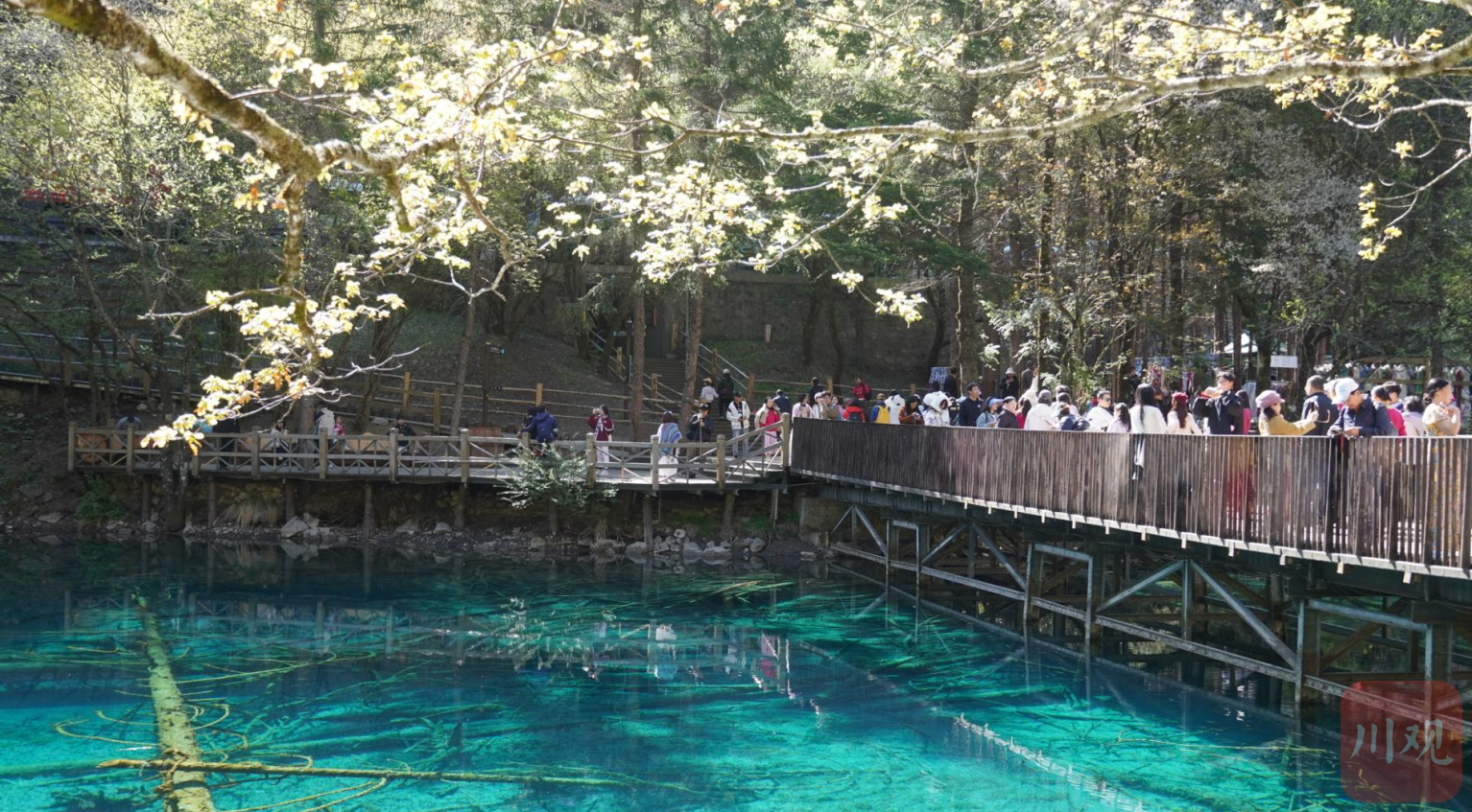随着五一假期旅游热潮的到来,世界自然遗产地九寨沟景区再度成为全国游客的“打卡”热点,景区内游人如织,来自全国各地的游客在这里感受大自然的鬼斧神工。自4月1日景区执行旺季政策以来,游客量持续攀升,多个核心景点人气爆棚,再现“人从众”,拉满节日的氛围。