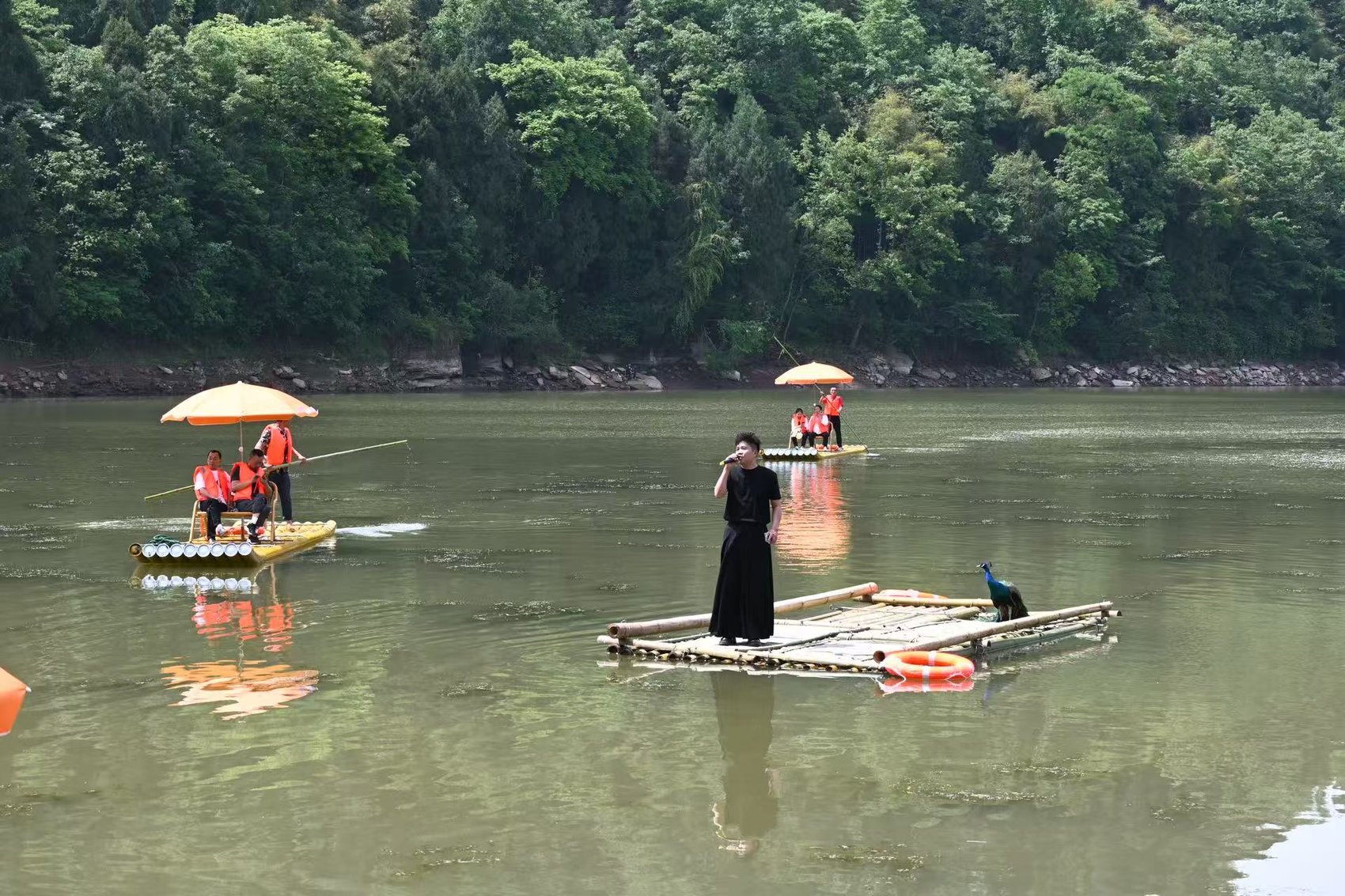象鼻河上,歌手立于筏头高歌