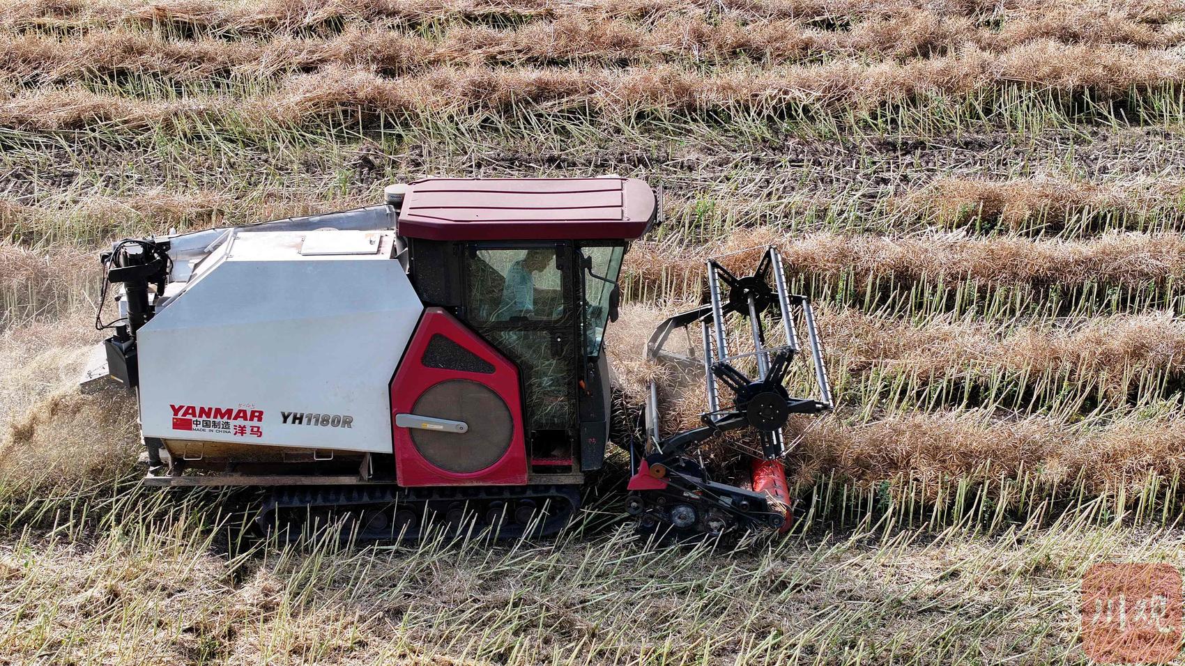 “现在采用割、晒、捡式分段收割,可以有效减少油菜籽的脱离损失,将机损率控制在10%以下,既节约人力,又能为下一季农作物的种植抢抓时间。”刘梦介绍,同时,机械化作业还可以将秸秆及时粉碎还田,培育土壤肥力,减少后续水稻种植的化肥使用量。