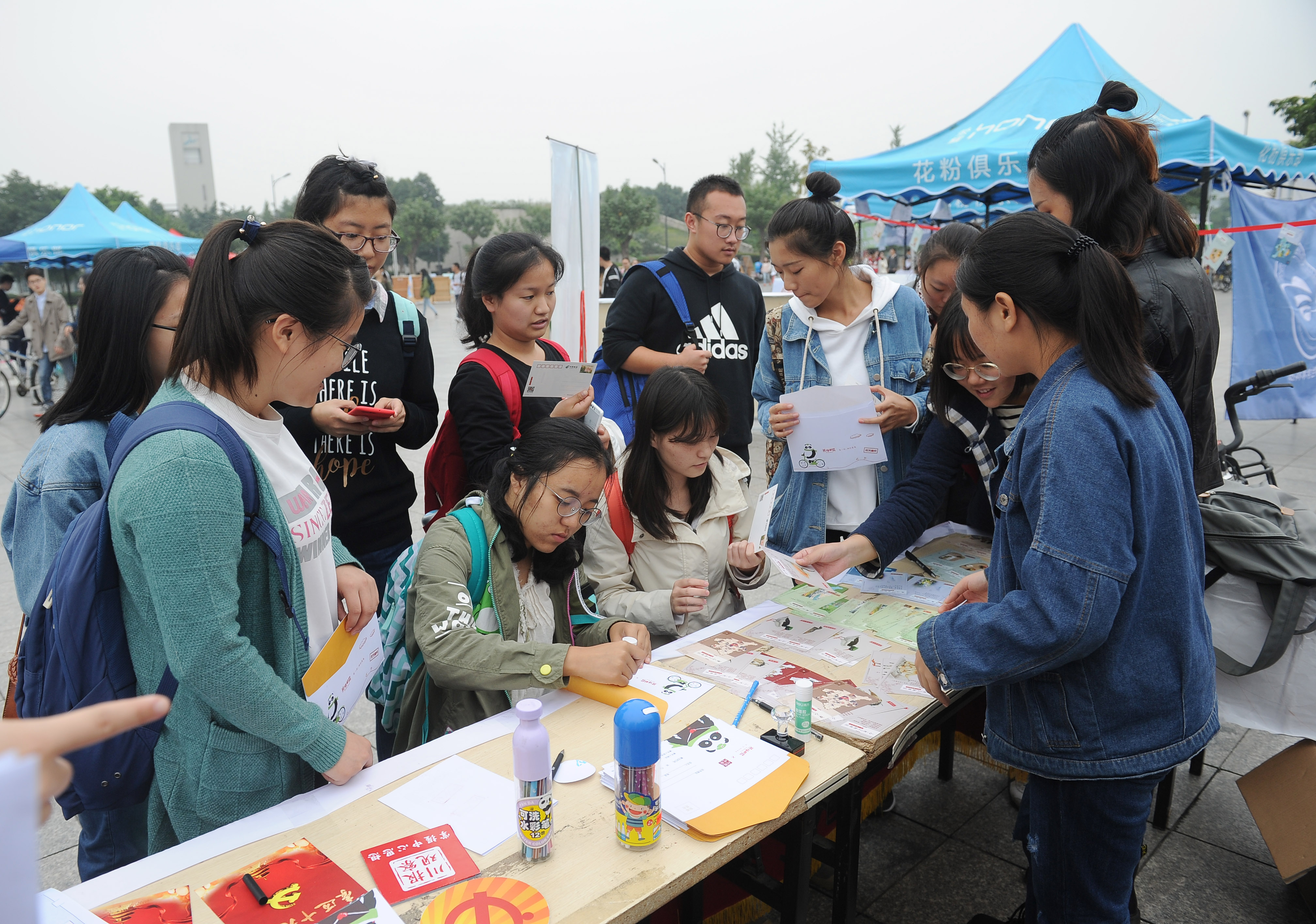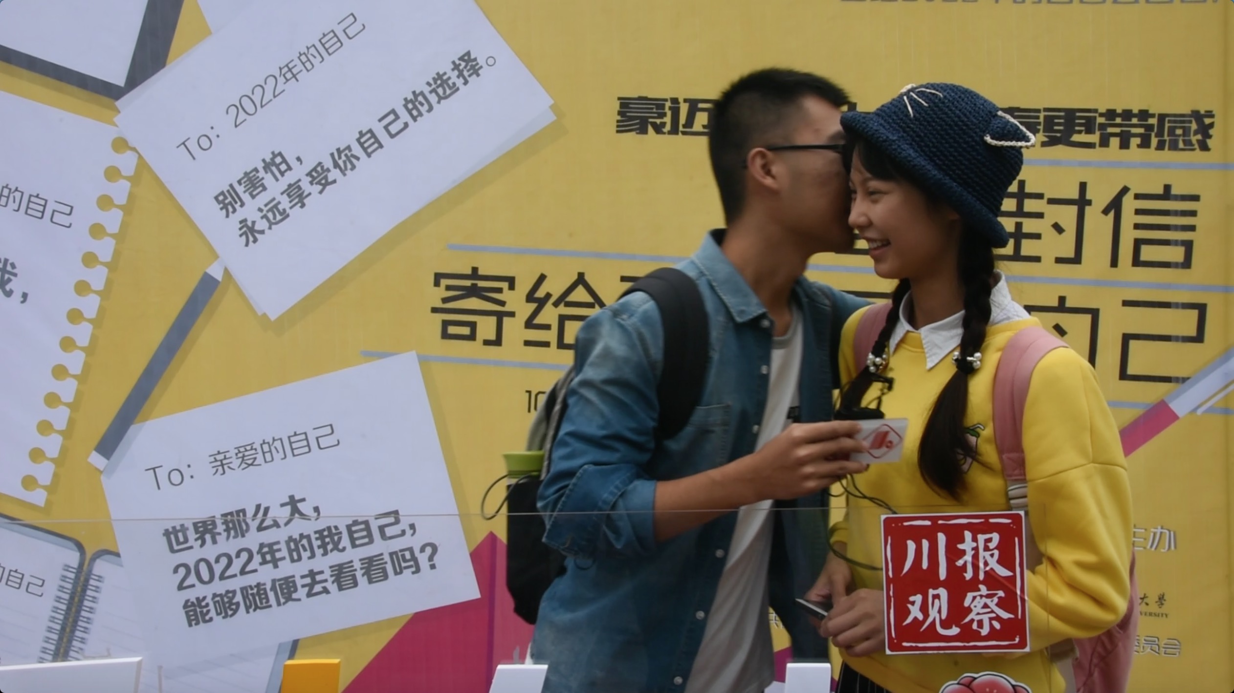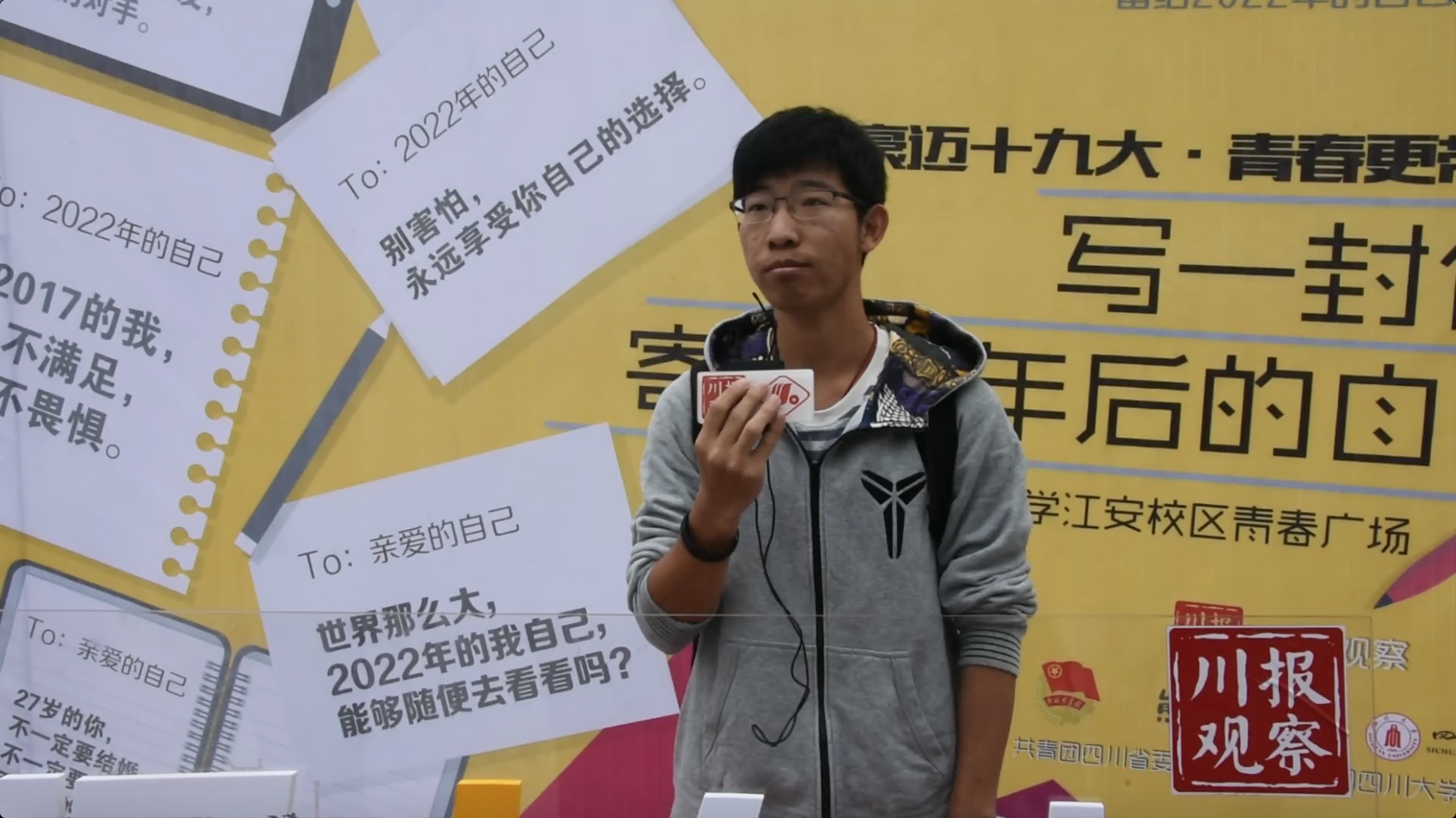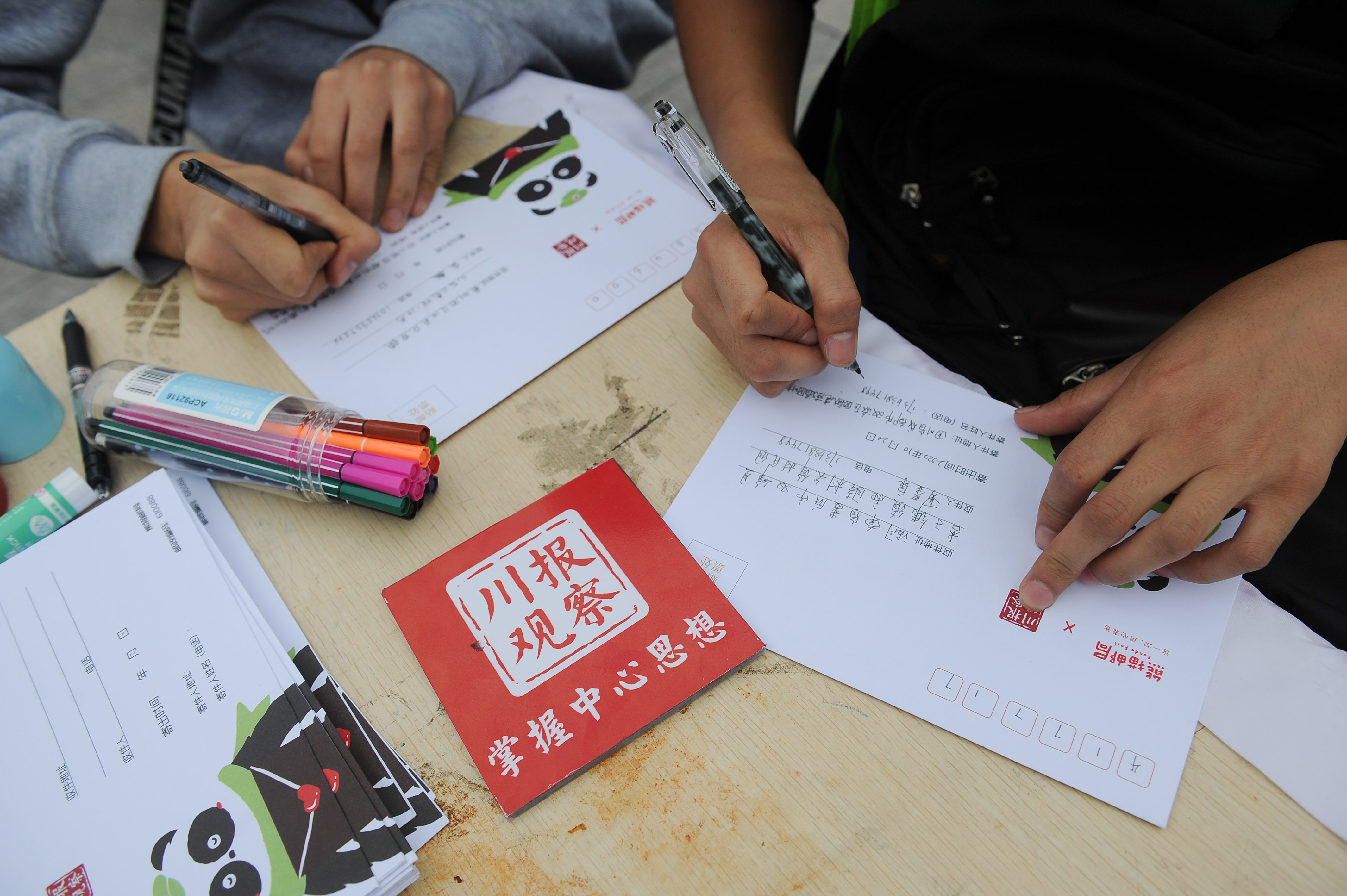 10月20日,川报观察联手共青团四川省委、熊猫邮局,走进四川各大高校和城市地标的的“豪迈十九大·青春更带感——给五年后的自己写封信”活动来到了第二站——四川大学!