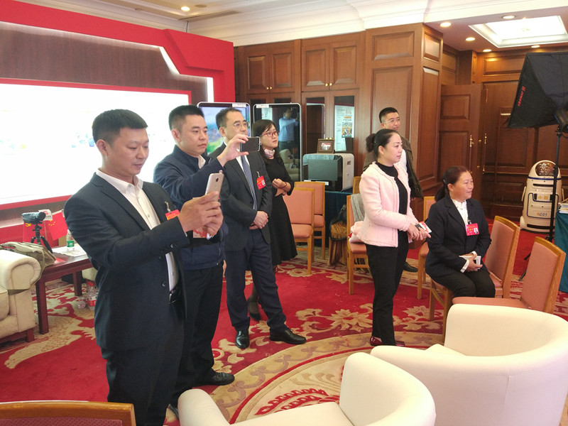 一进演播厅门口,机器人“小新”就热情地与代表们打招呼。这个科技感十足的小家伙不仅会读新闻,还能与人交流最近的新闻热点。演播厅四周,是四川日报“向总书记报告”的篇篇雄文和“四川砥砺奋进的五年,治蜀兴川更上新台阶”图片集,代表们看了非常振奋,深受鼓舞。