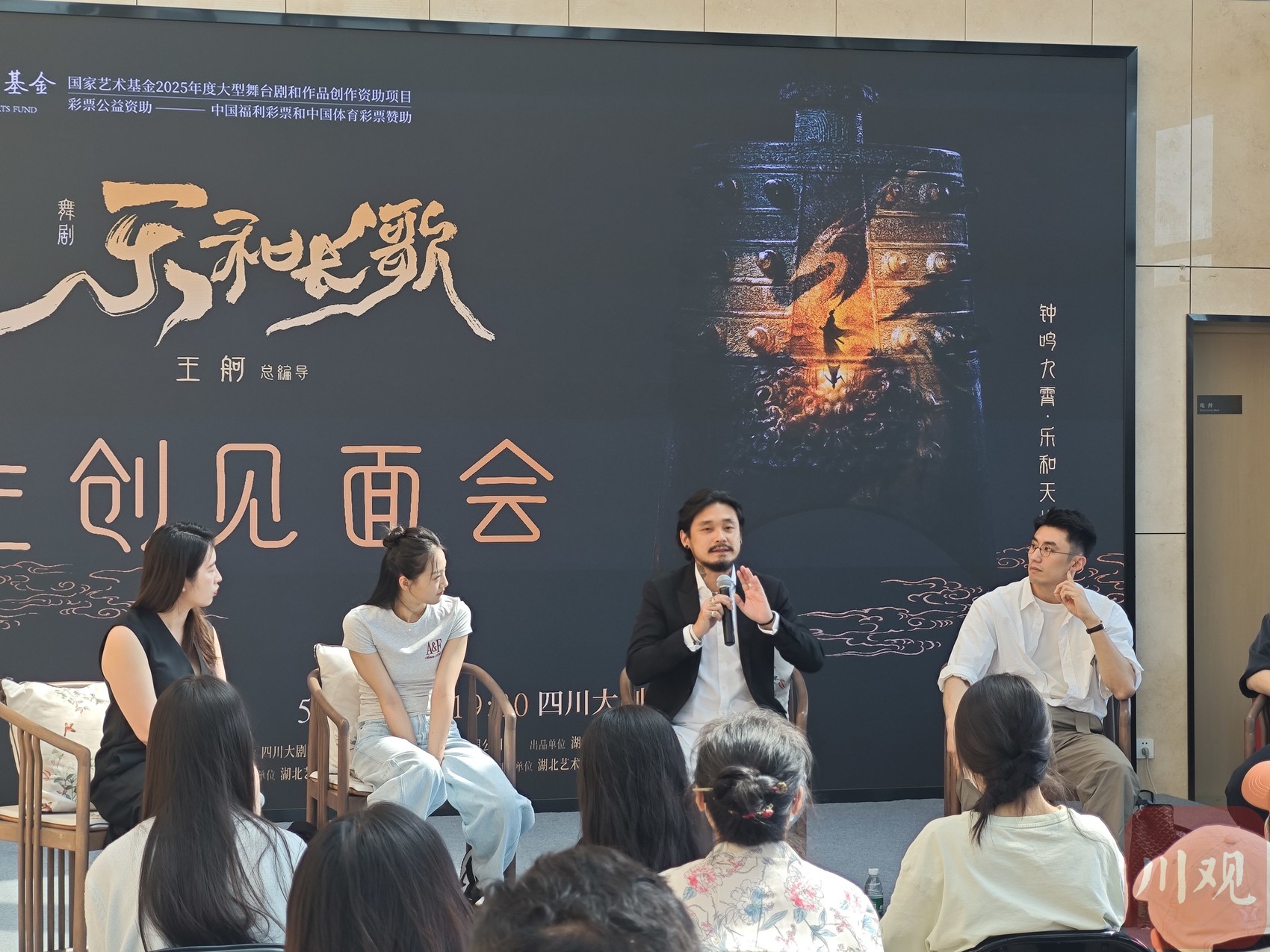 湖北艺术职业学院、湖北省歌剧舞剧院创作演出的大型舞剧《乐和长歌》“五一”假期在四川大剧院巡演后,还将在5月9日亮相成都简阳大剧院。该剧以春秋战国时期为历史背景,用从湖北省博物馆复刻的编钟、钟磬、虎座凤架双面鼓等古典乐器,还原楚地礼乐氛围。
