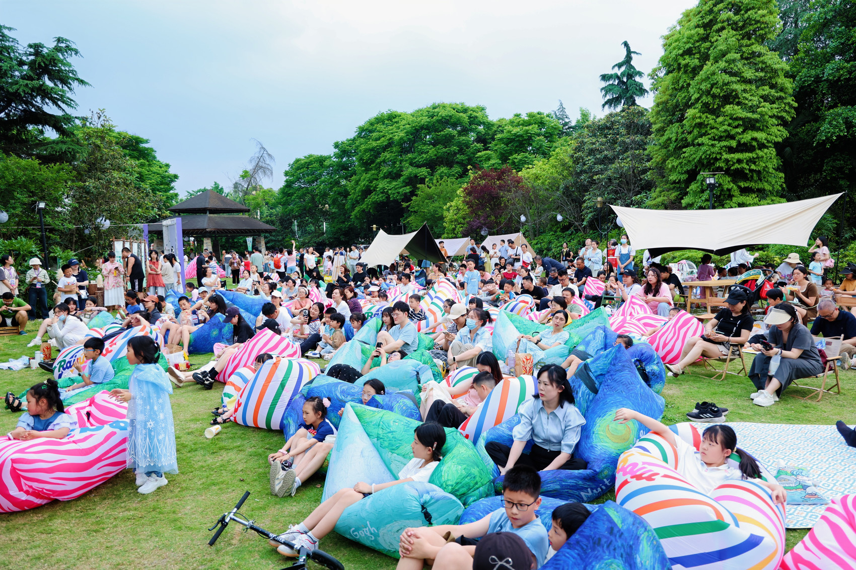 市民们坐在充气沙发上观看音乐表演。成都市文化馆供图