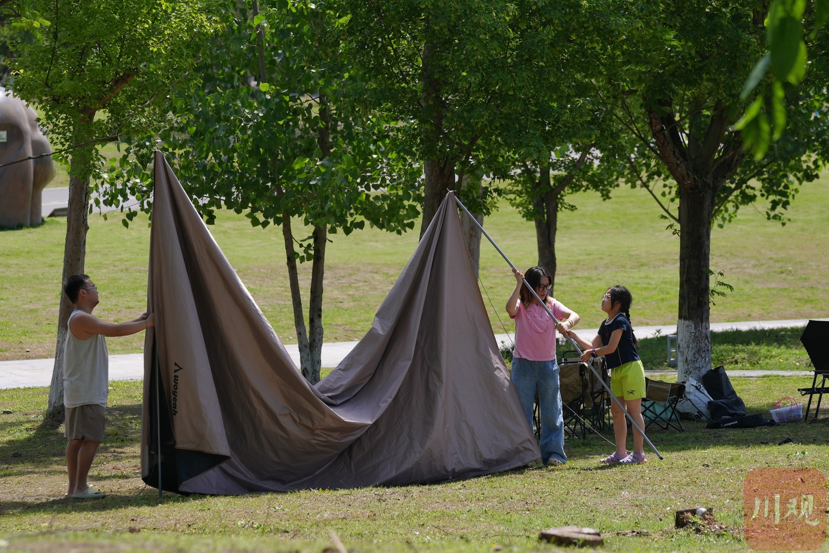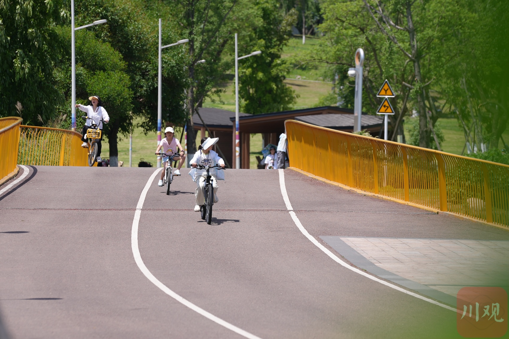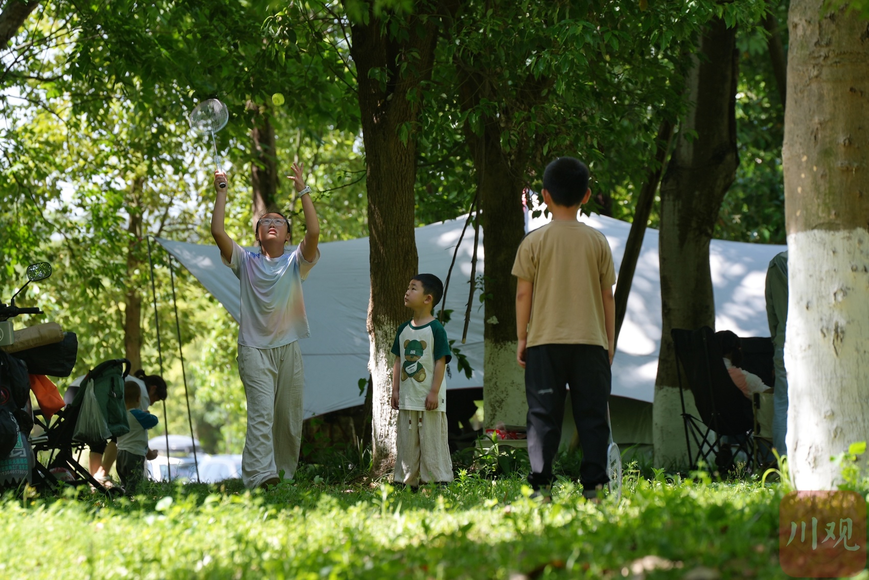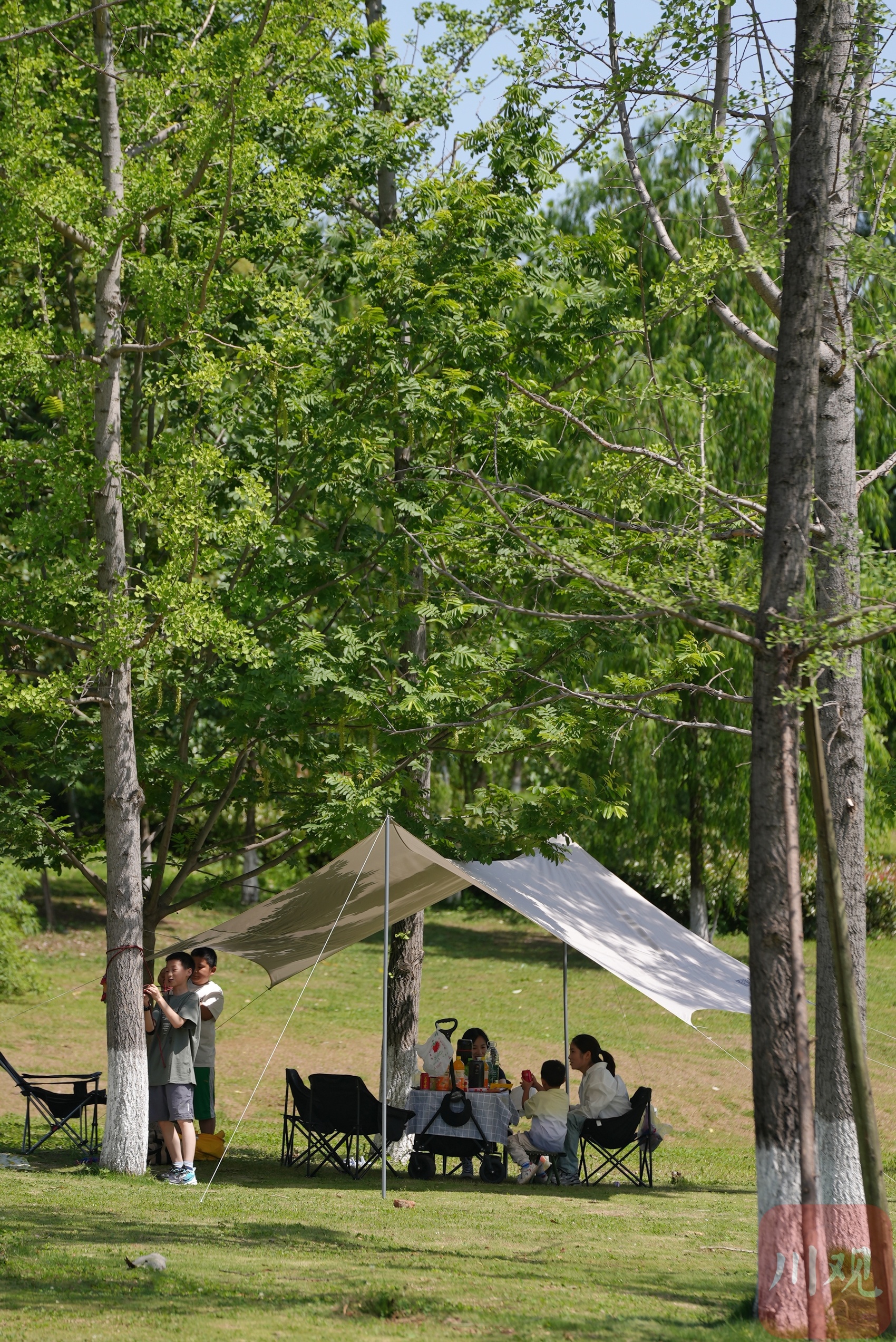 5月5日是“五一”小长假最后一天,不少成都市民选择城市近郊休闲,走进公园与家人、朋友共度假期尾声。当日,记者在江家艺苑看到,园区内迎来客流小高峰,市民们通过露营、骑行、亲子戏水等方式,尽享大假惬意时光。