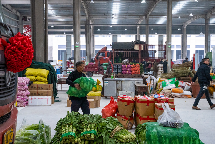 时间翻回到1月5日下午15时许,资中文庙口蔬菜批发市场人声鼎沸,整个市场内批发商家正在各自门店内清点货品、打包装车。当天,资中县城内的蔬菜批发业态进行整体搬迁,城内包括文庙口批发市场在内的两家蔬菜批发市场将正式关闭,并统一搬迁至资中新发地国际农产品交易中心。