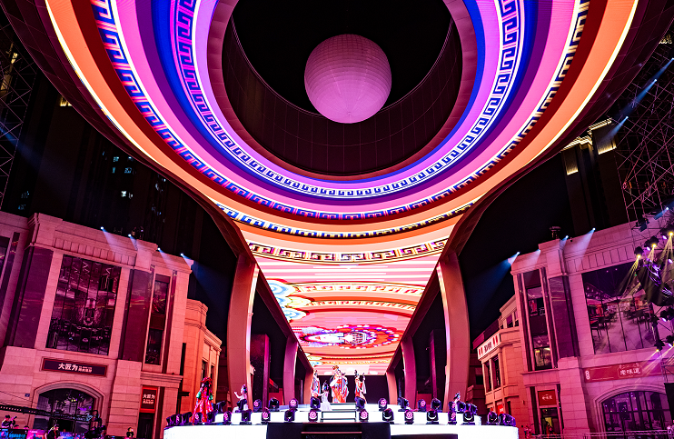 活动场地选在内江最新网红打卡地万晟天街。为了体现此次春晚的主题,从舞台到LED造型,再到现场布置的圆桌,现场采用圆形素材体现十城融合、圆满、团圆的喜庆氛围。现场将展示各地文创产品,充分体现文旅融合共同发展。舞台设计上采用三面超炫立体LED与1000平方米天幕同时点亮,成为内江夜空中最亮的星。
