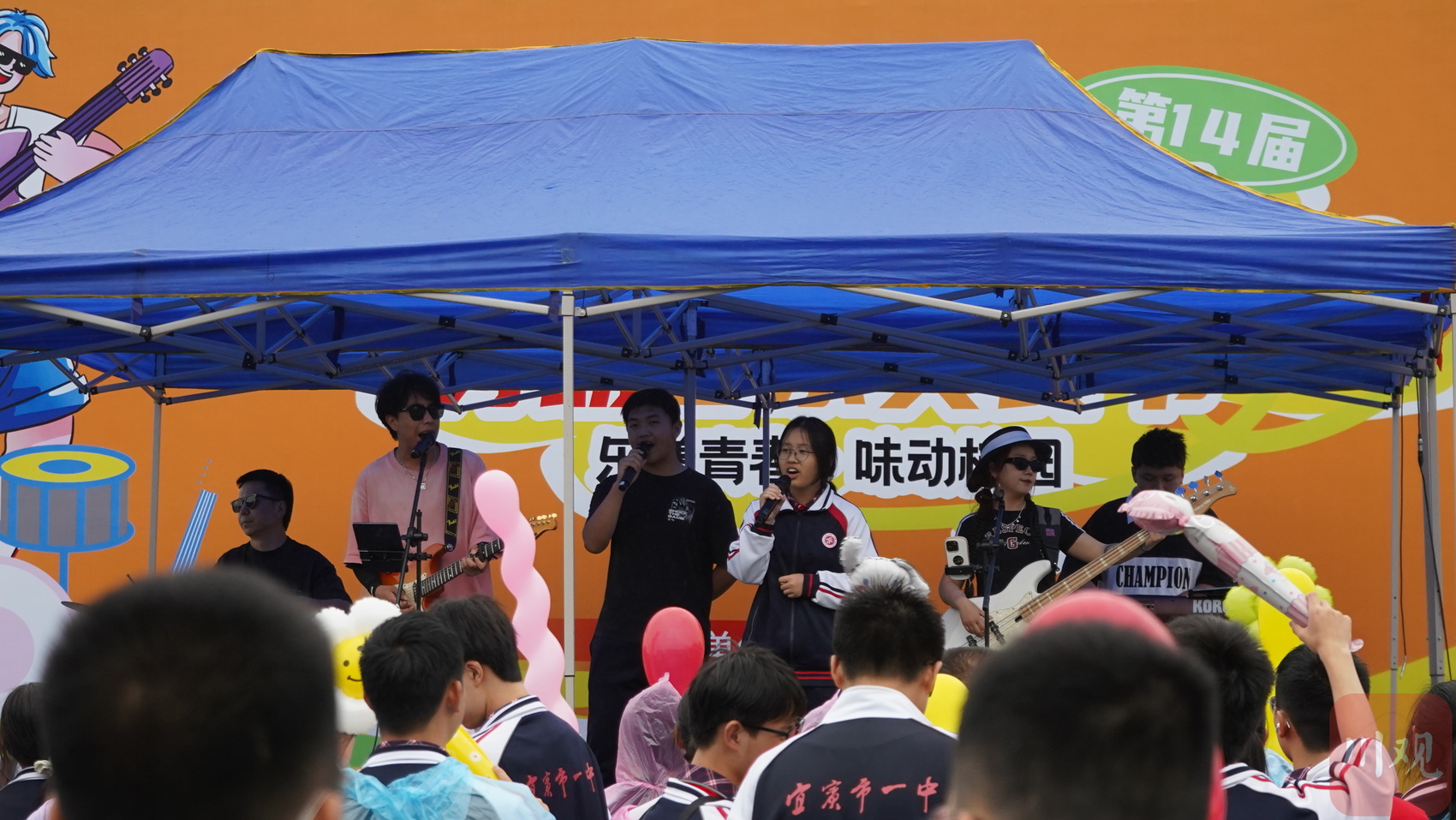 台下学生们忙碌准备美食,台上活力四射的表演也赢得阵阵叫好。两支学生乐队先后登场,将现场气氛推向高潮。“学习之余,能参与这样好吃又好玩的活动,可以释放压力,放松心情。”高一学生戴诗锐说。