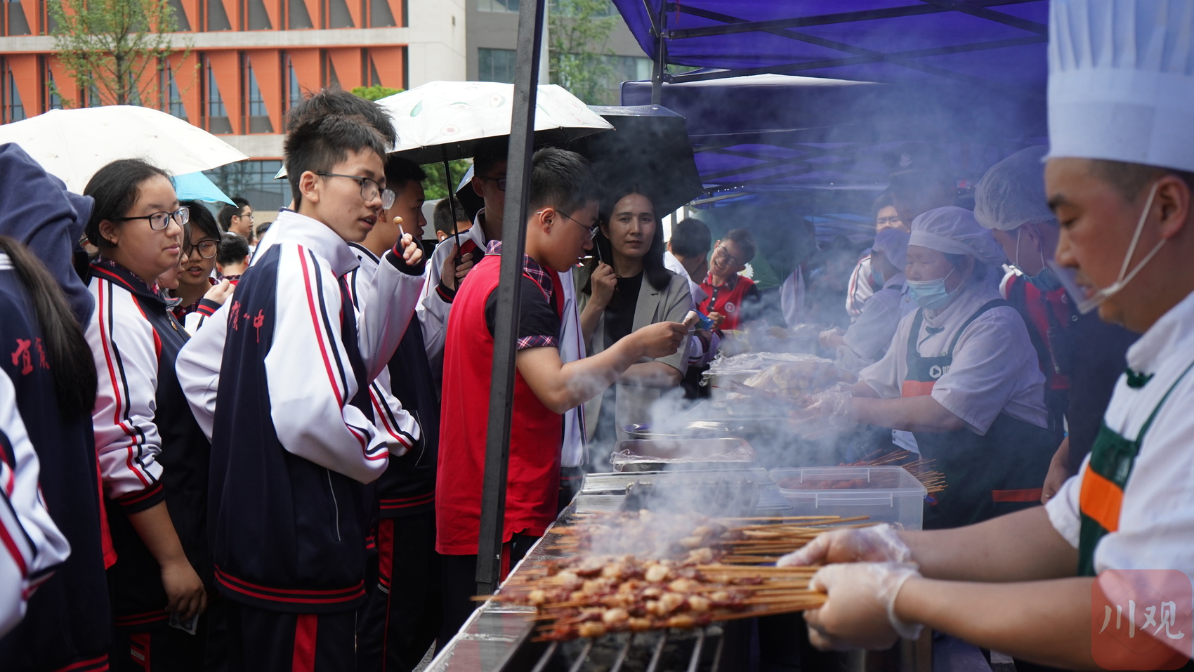 “走过路过不要错过,现串现烤的羊肉串!” 5月6日下午,在宜宾市一中劳动·音乐美食节现场,学生们纷纷变成烹饪能手,将校园变成了美食街区,这是宜宾市一中连续十四年举办该类活动。
